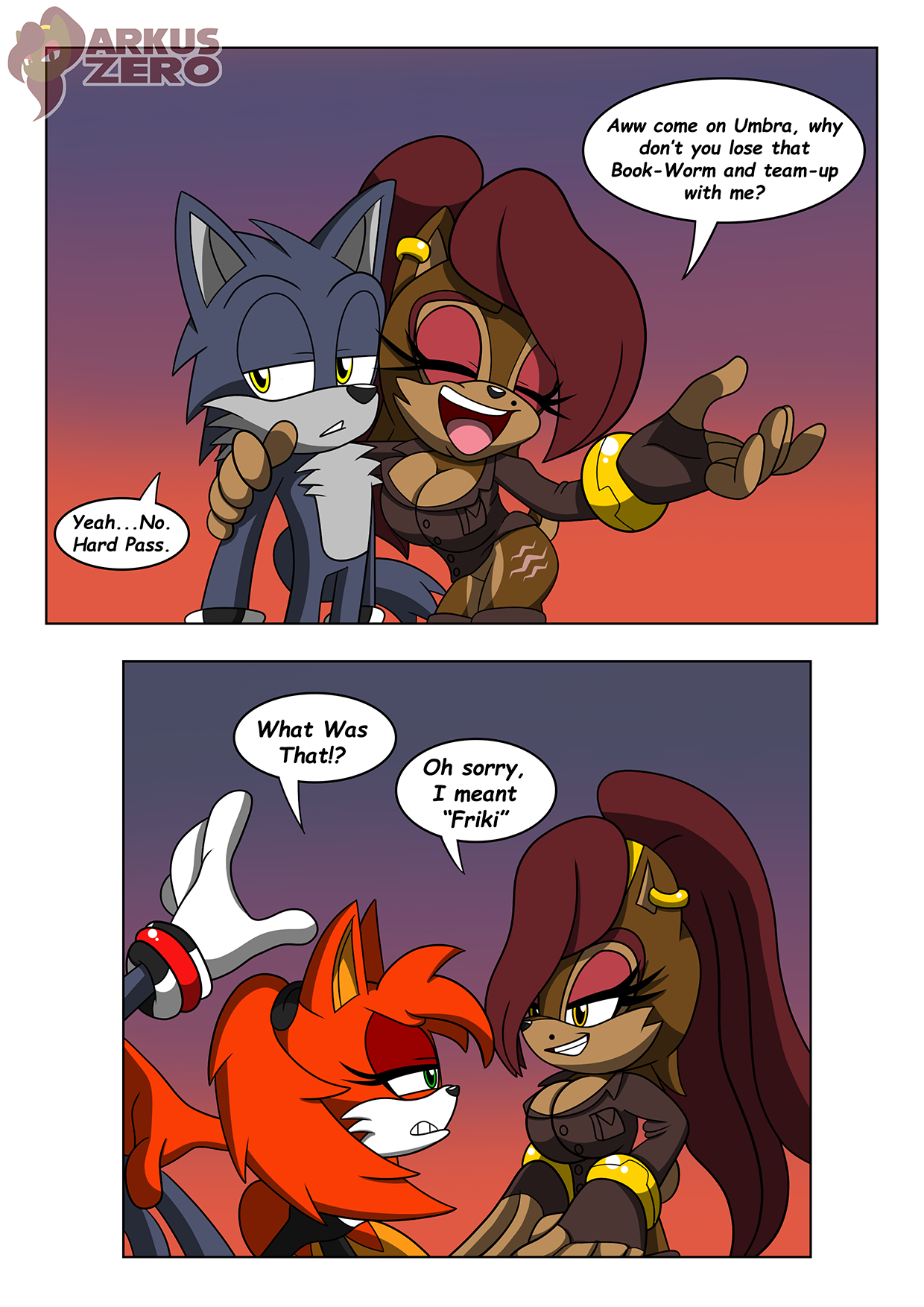 Originally Published: chipmunk,Apr 29, 2023Another Trend related art piece! This time is of the comic panel(s) from Sonic IDW issue #59 that everyone is either editing or redrawing for fun. I decided to take a crack at it but with my own characters. Here we have Citrina, Ruby's old school bully, now bitter rival in the Treasure Hunting business trying to put the moves on Umbra. Mostly just to get under Ruby's skin which seems to work, despite Umbra being wise to Citrina's methods and history, Ruby is still pretty defensive and easily angered by the coniving Chipmunk. FYI, "Friki" is a spanish word for "Geek" and it's nickname Citrina uses for Ruby since they were in school. Umbra, Ruby and Citrina (C) of me :iconarkus0: Sonic the Hedgehog (C) of SEGA Originally Published: chipmunk,Apr 29, 20230 Comments 0 Shares 31 Views -