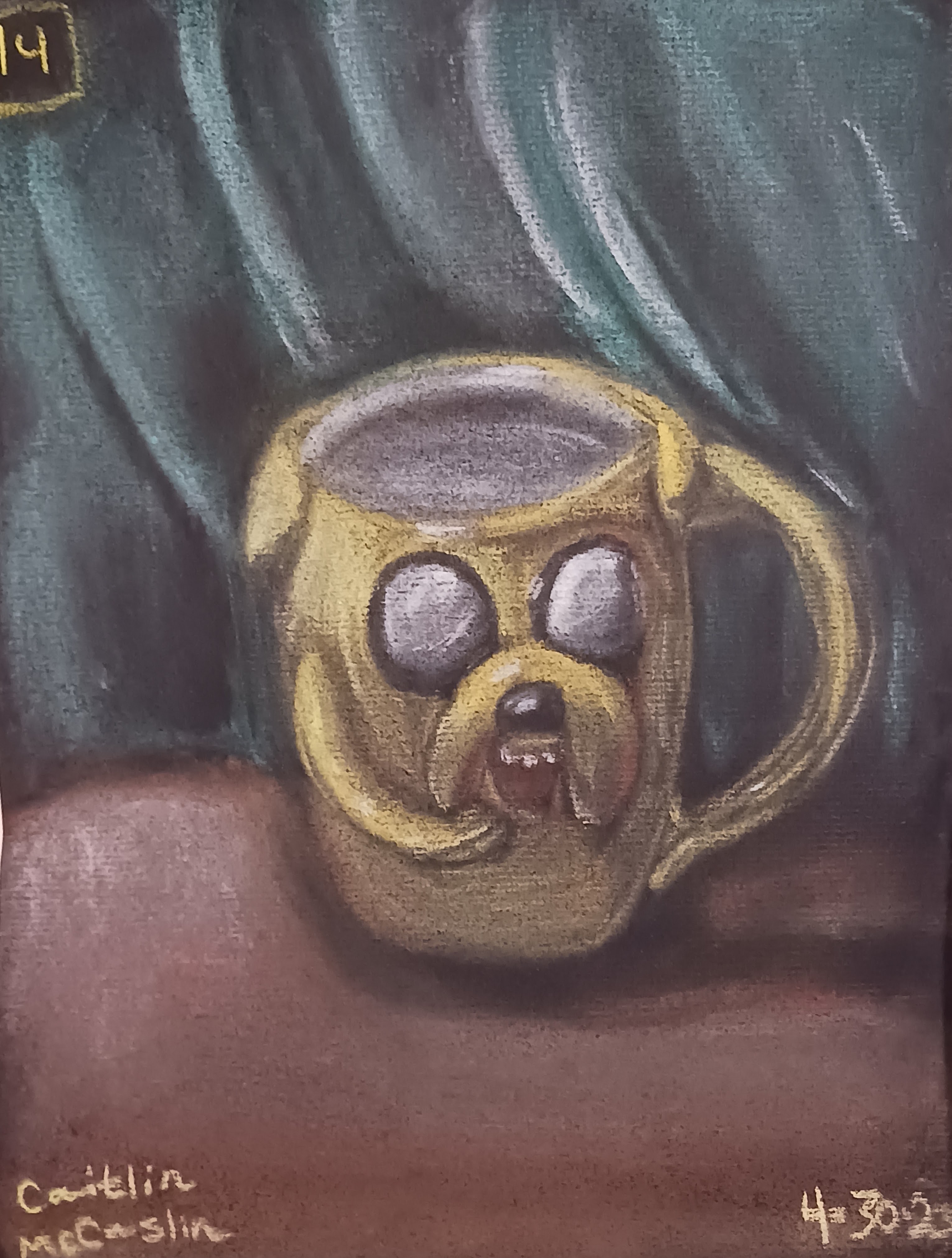 4/30/23Still life drawing of my Jake mug. This is one of my sketchbook entries for my other art class hence the 14 on the top left. Materials used were oil pastels 4/30/230 Comments 0 Shares 27 Views