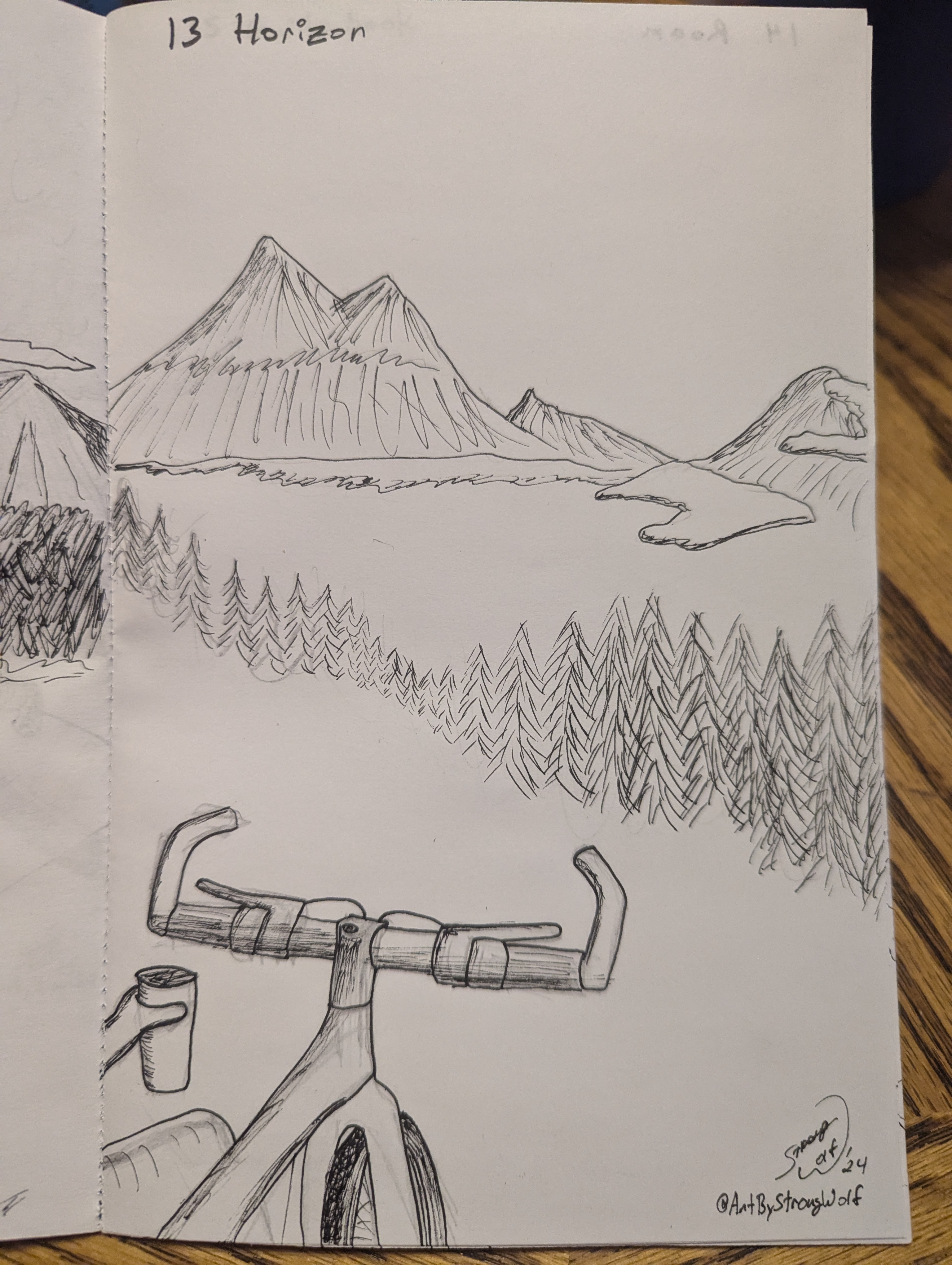 #Inktober day 13: #Horizon. Another #mountain scene on a #mountainbike #bicycle0 Comments 0 Shares 24 Views