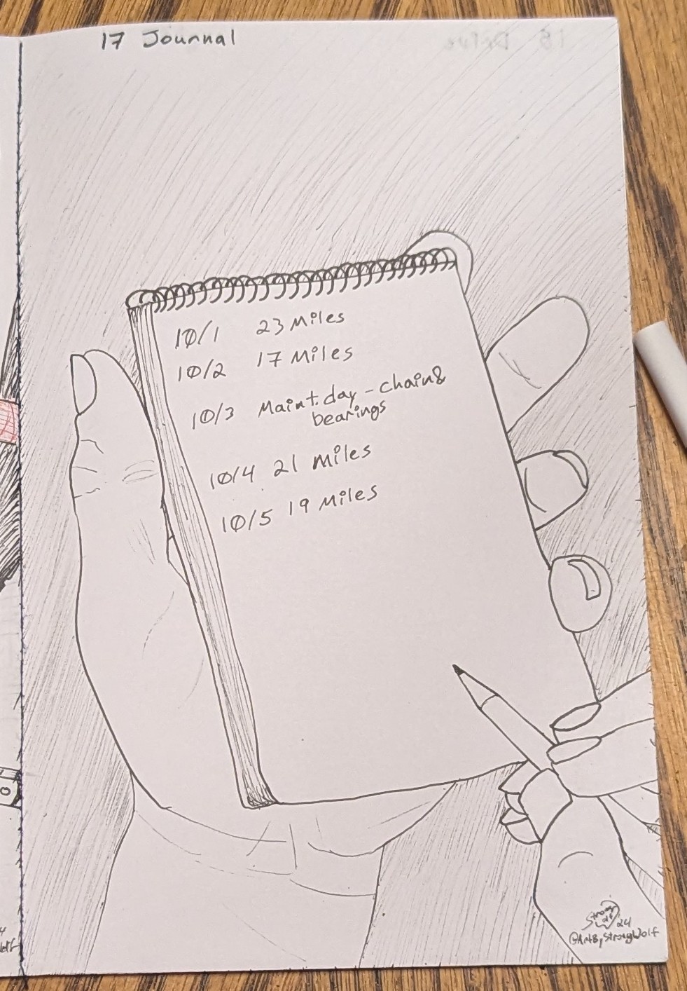 #Inktober day 17: #Journal. The #bicycle ride and #maintenance log of an avid cyclist.0 Comments 0 Shares 22 Views