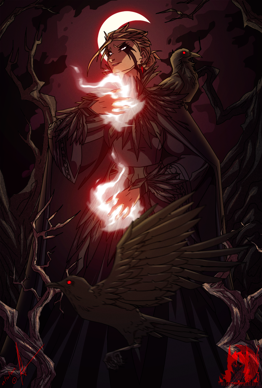 2 of 5 of Kazmir Halloween-themed art! Myrvyn typically uses crows and ravens as scrybirds, so I went along with that theme for her