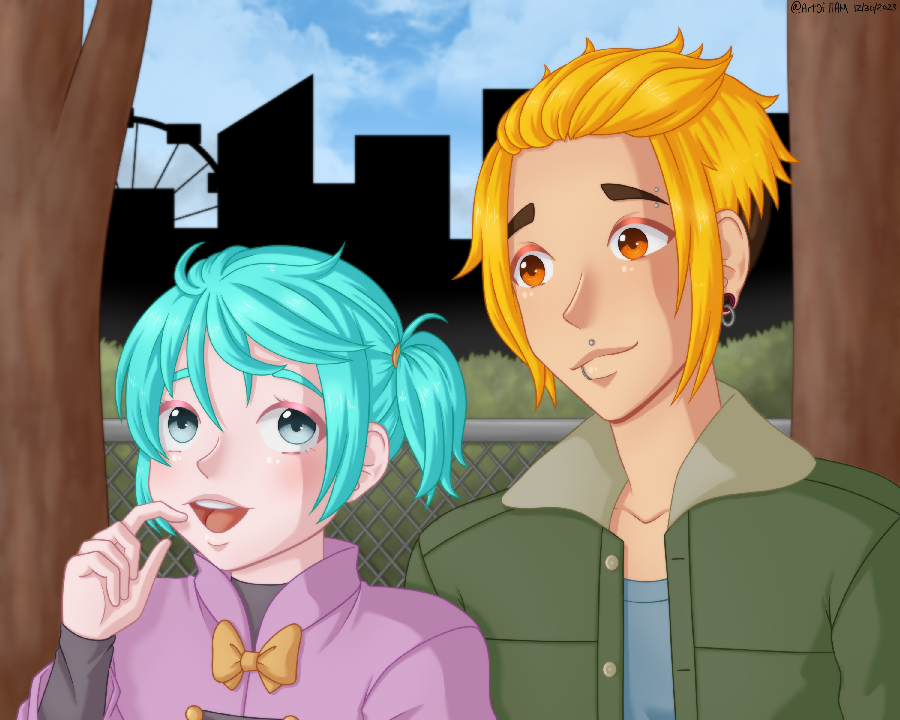 These are my characters Sakurai and Abe. I have a tradition where I draw them together at least once a year. Wasn't sure if I'd get around to it this year due to everything else I was working on. But I didn't want to leave 2023 with too many regrets, so I pushed to get this finished.