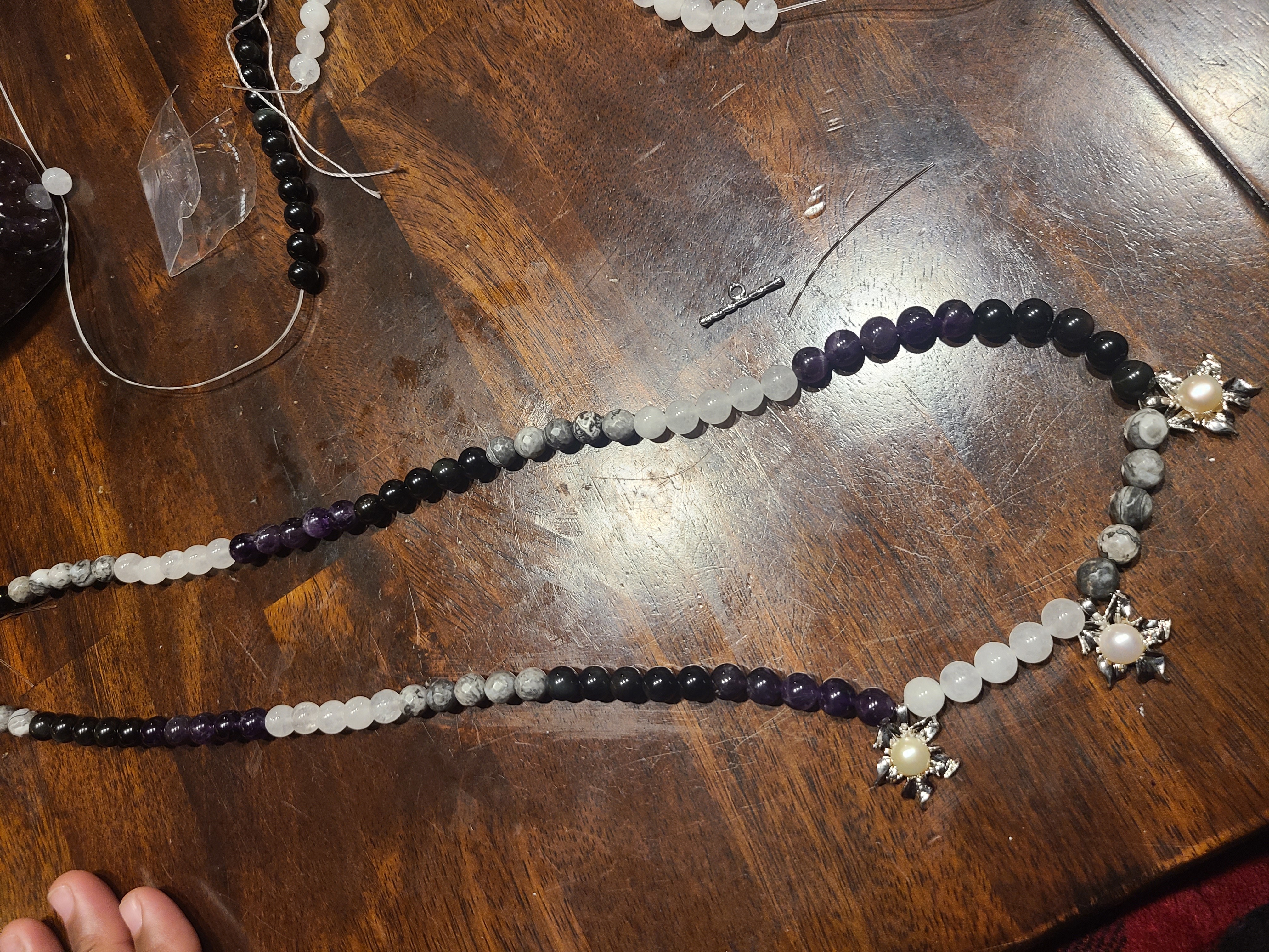 An Ace necklace with metal and pearl flowersAn Ace necklace with metal and pearl flowers0 Comments 0 Shares 2 Views