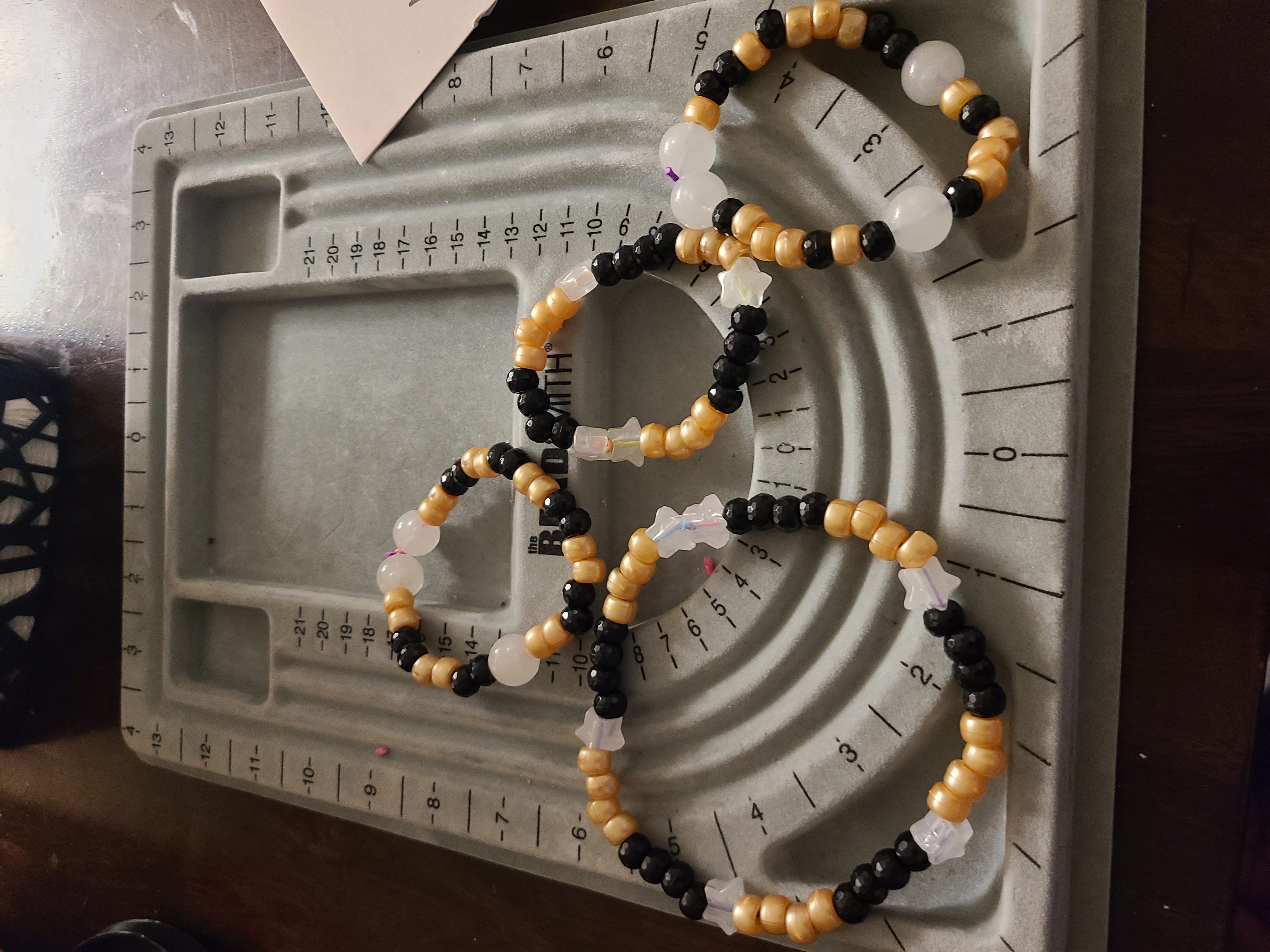 3 bracelets and one anklet in gold and sparkly Black beads with some glow in the dark balls and stars3 bracelets and one anklet in gold and sparkly Black beads with some glow in the dark balls and stars0 Comments 0 Shares 3 Views