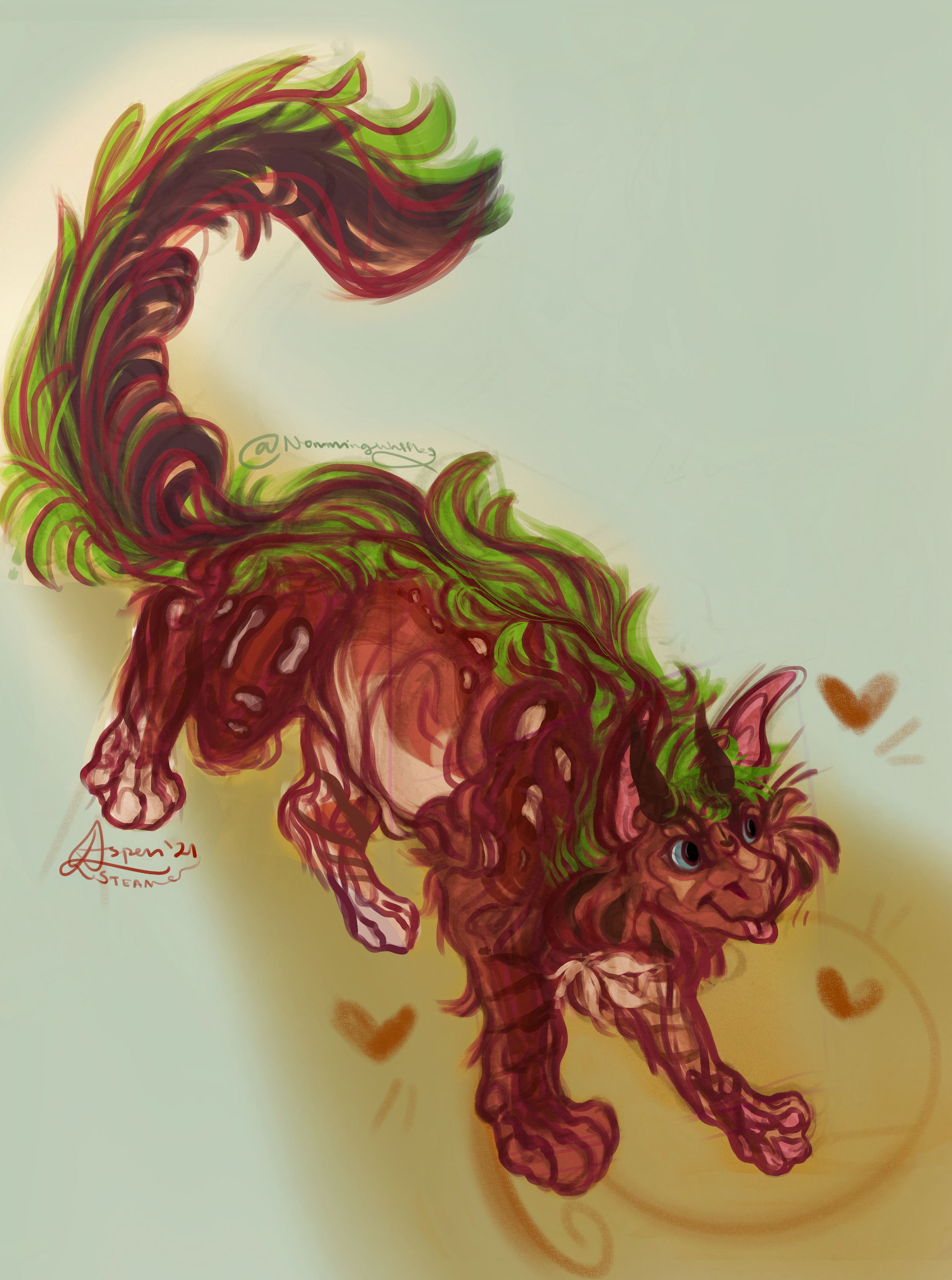 I'm really happy with how I drew this guy. I had several other colour variations so was really indecisive about what to go with, but I'm fond of his head spikeys and his shapes.