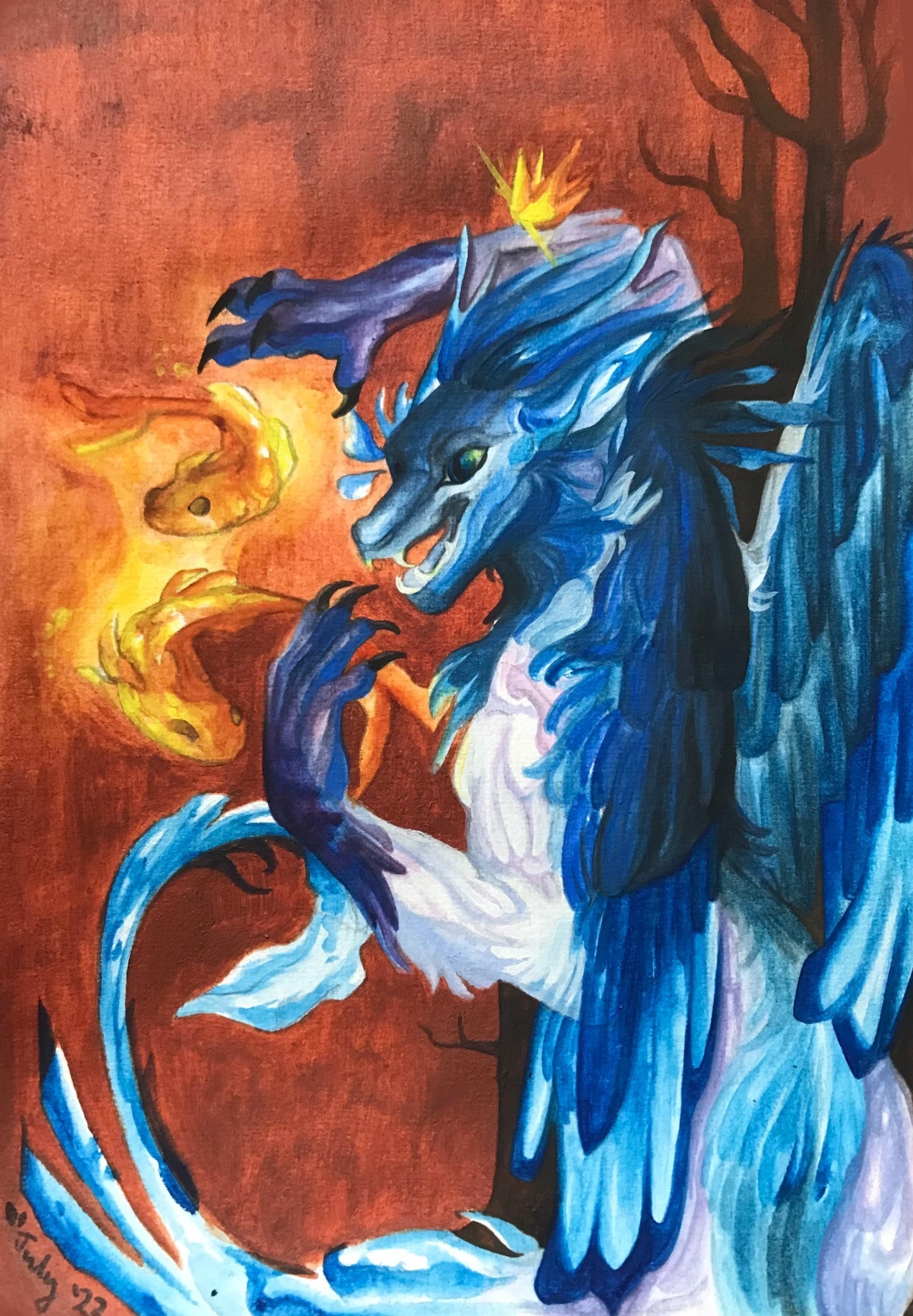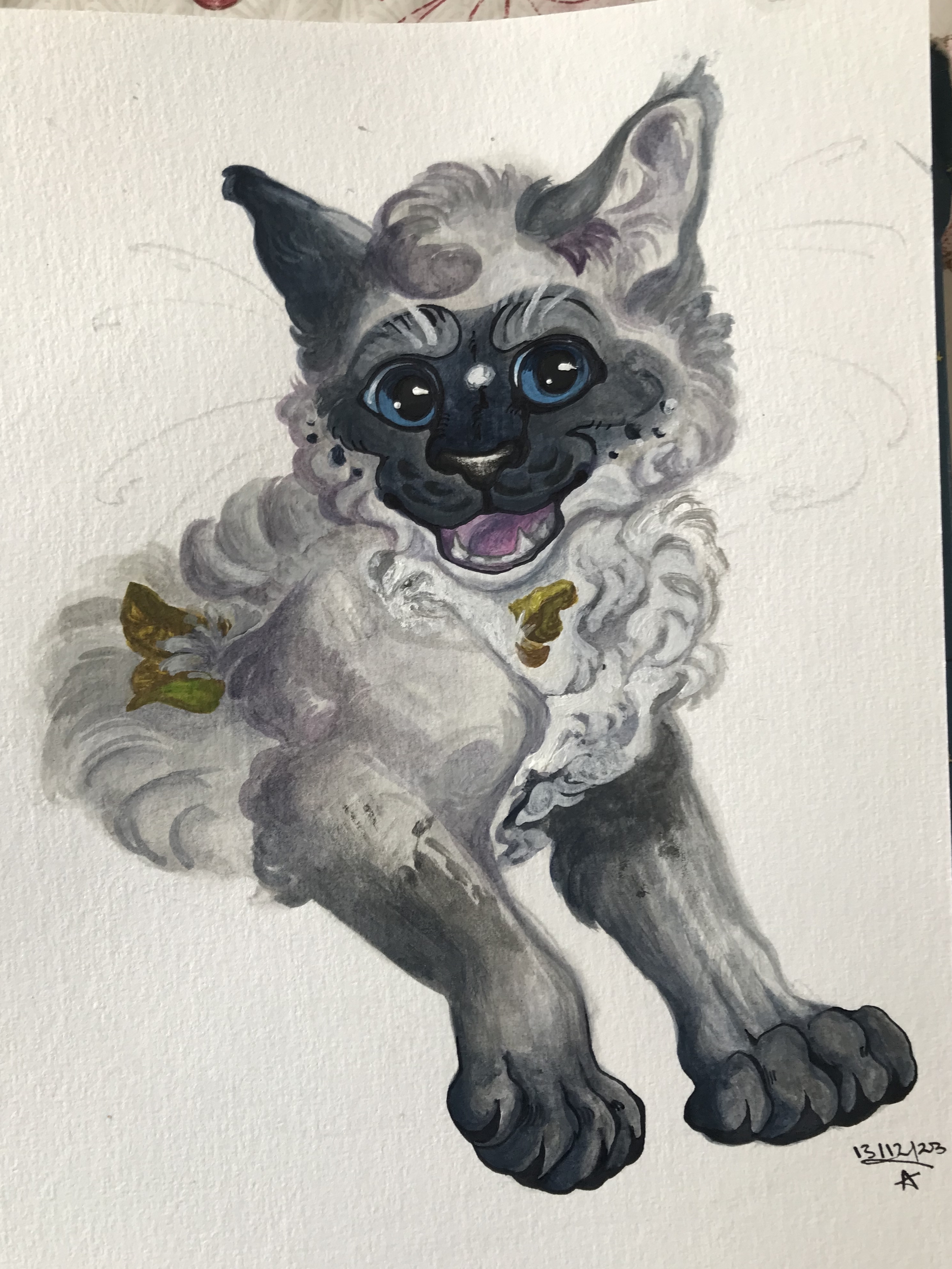 A draw-this-in-your style entry for AzulMagpie on Instagram (character belongs to her)- done across June/July 2022. So much fun!! Though still getting used to paints, and using paper that isn't just from the printer.