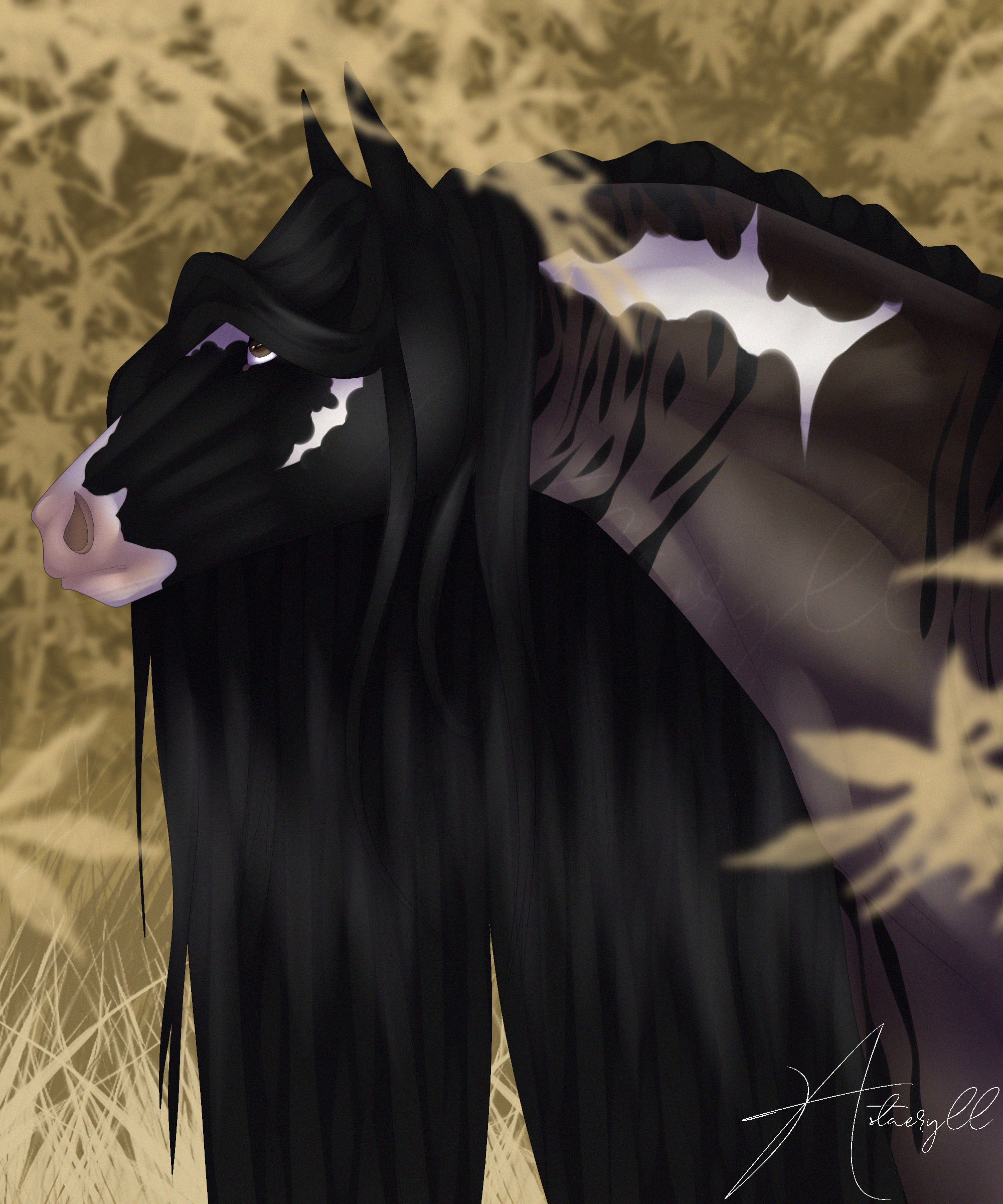 Quite proud of the piabald-ish markings on the neck and face, and the background! I think I'm getting somewhat of a grasp over background colors to make the character pop out more!