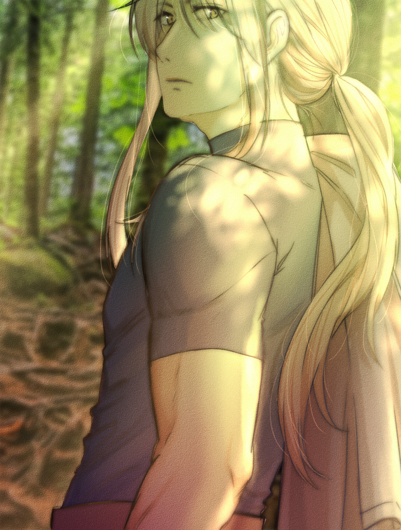 And this here is my husbando, the only 2d OC man that I'm hyperfixating for a good two years already. I just wanted to practice the light coming from down from the trees.