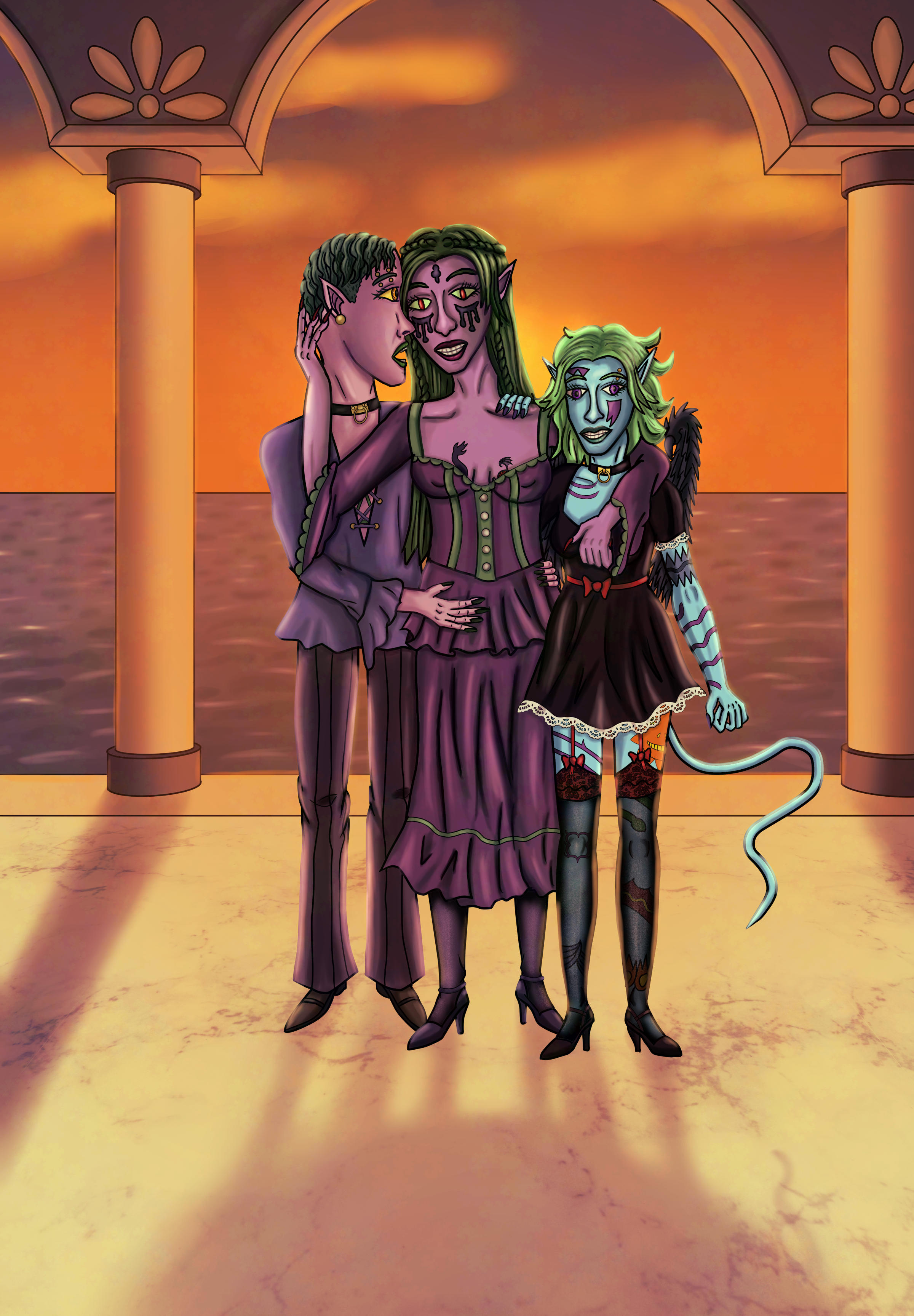 Annaerlitha and her loves Eri and Frelly are enjoying each other in a distant port city, with a promise that they'll spend some more intimate moments in the palazzo she obtained with her family's wealth. Based on my previous [pencil sketch](https://www.deviantart.com/avengingkobold/art/Annaerlitha-Eri-and-Frelly-By-the-Sea-1070922403) and completed in Clip Studio Paint.0 Comments 0 Shares 25 ViewsPlease log in to like, share and comment! -