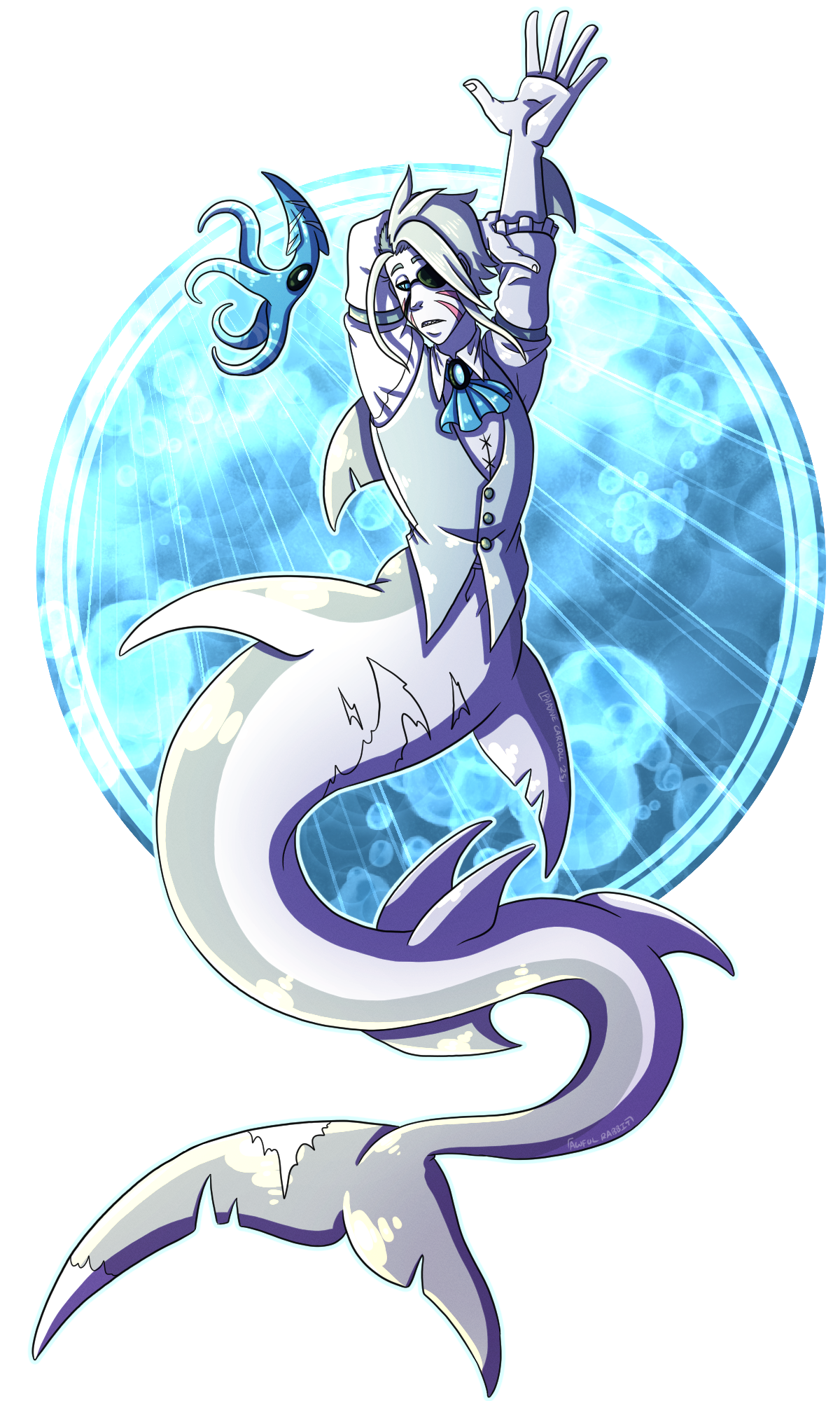 Another Art fight 2025 attack! This is an attack on Stryx-Alba! I love a good shark merperson and Zenith here was no exception! Plus, he an adorable emotional support squid. What's not to love?