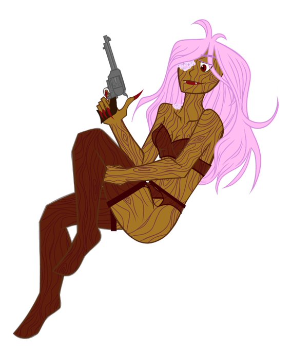 Those fangs aren't real, by the way. She filed her canines to be sharper to assassinate her cousin to take the royal throne. Her revolver would have been far too loud and obvious.One of my ocs dressed in lingerie. She takes that gun with her everywhere. In the summer she gets wood grain patterns not unlike a lilac tree and her bark skin is noticably more stiff. Those fangs aren't real, by the way. She filed her canines to be sharper to assassinate her cousin to take the royal throne. Her revolver would have been far too loud and obvious.0 Comments 0 Shares 7 Views -
