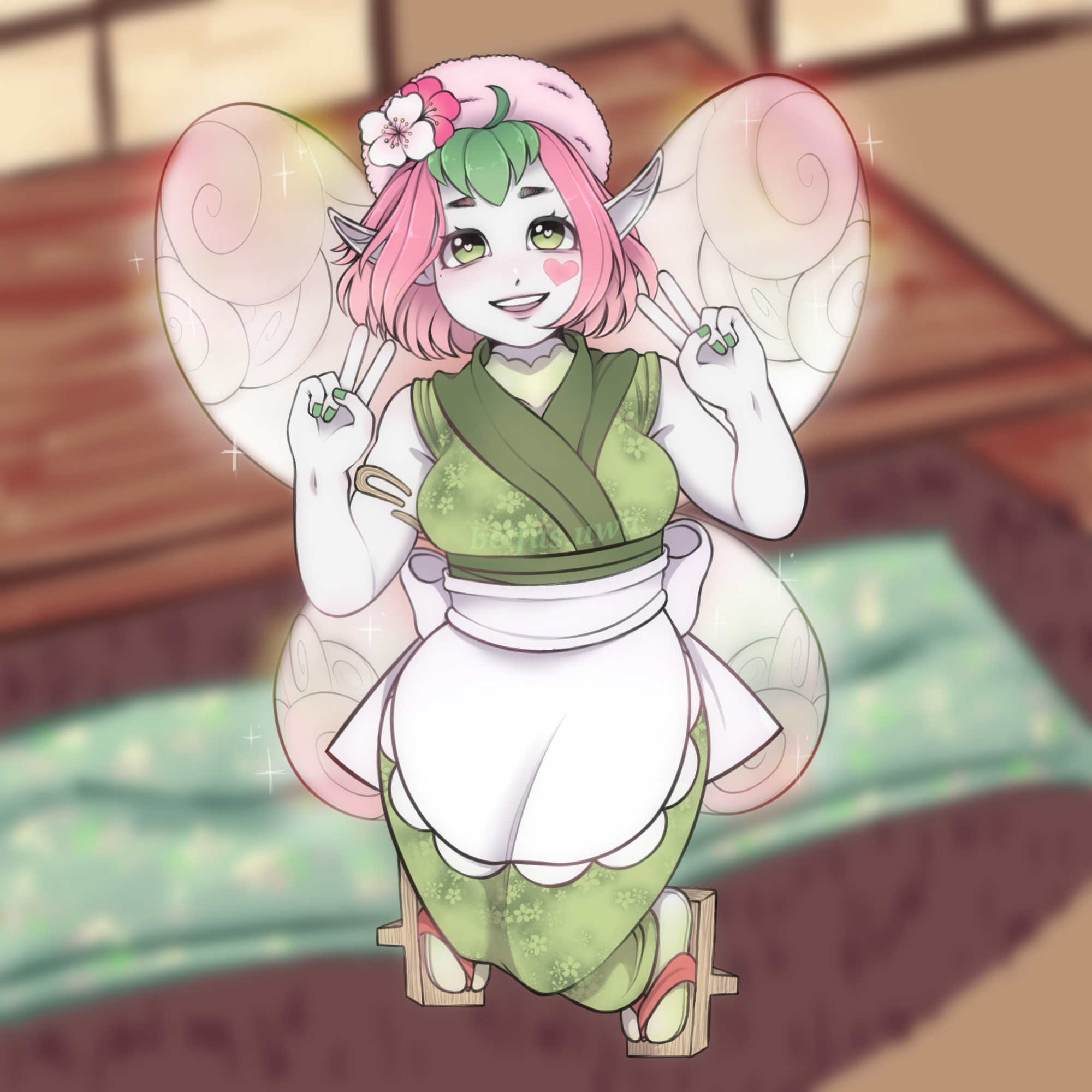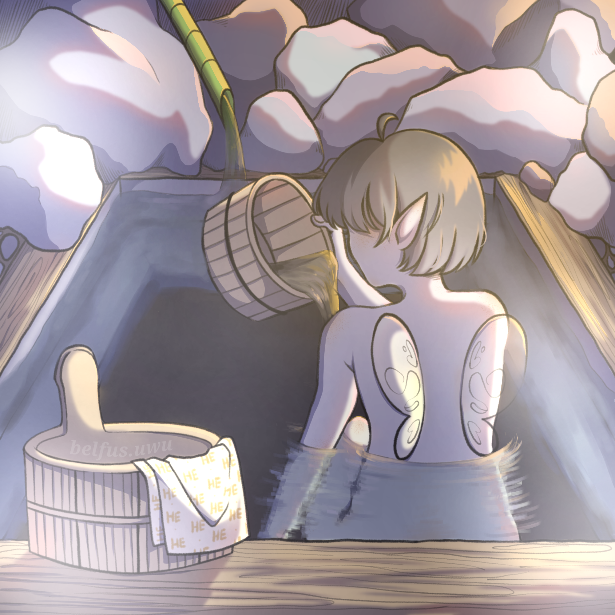 I decided to skimp on the fairy and mainly focus more on the background in order to make it believable that it’s… ya know, a Japanese onsen. Aside from that, despite my original intentions, I kinda adore this prompt’s fairy - idk why, she just looks so cute and simple! Definitely gonna draw her more in the future.