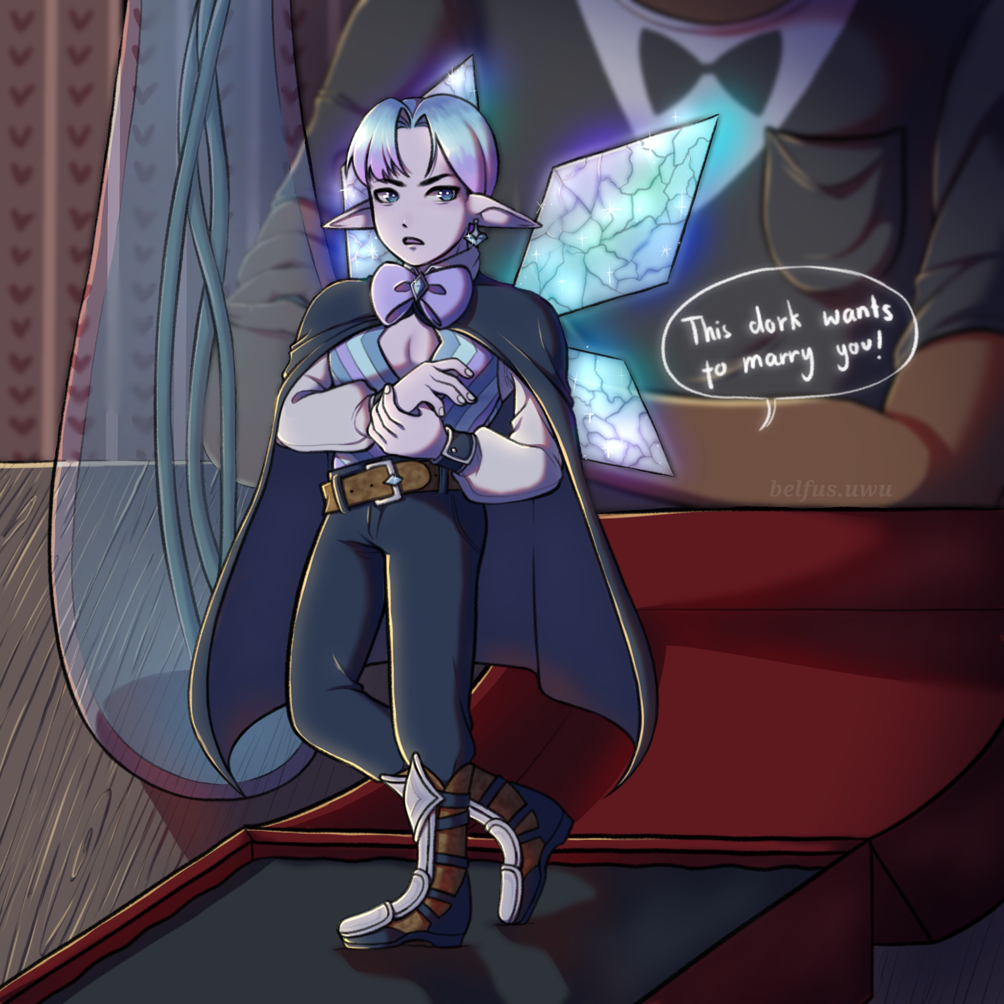 But don’t worry, despite this kinda inhumane and frankly, dehumanizing treatment, he WILL have a fairy girlfriend! Stay tuned for her.Take a look at this bad boy… JK, he’s literally a diamond ring. Does that make me sound crazy? Probably, but I’m being serious here - in this universe(?), mineral based fairies are unnaturally born and they’re like a symbol of wealth and fortune! Our boy here is a diamond fairy and he has been born to essentially be a proposal ring for the guy behind to propose to his human girlfriend. Wow, that’s really hard to read in one go. But don’t worry, despite this kinda inhumane and frankly, dehumanizing treatment, he WILL have a fairy girlfriend! Stay tuned for her.0 Comments 0 Shares 4 ViewsPlease log in to like, share and comment! -