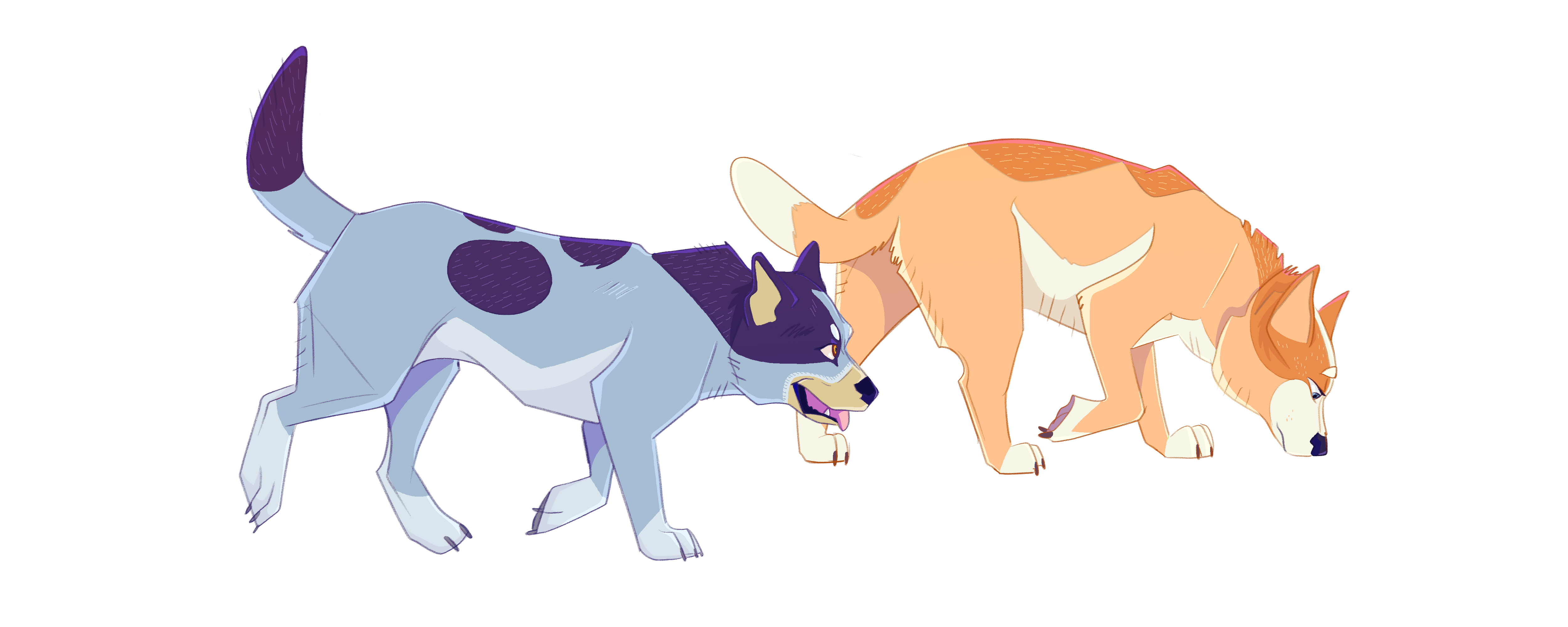 I am aware that this show is made for preschoolers, but it's probably one of the most wholesome shows I've ever seen. I used to watch it a lot because it had a Finnish dub, and it REALLY helped me learn a language, since the dialogue is rather simple.I just love this show. I have been wanting to make a piece like this for a few years now, where I draw em as normal dogs, in my style. So here it is, Bingo and Bluey. Bingo is my favorite character in the show, and I envision that if these characters were actual dogs, as they matured, I think Bingo would be in charge. :3 So here's Bingo leading the way all serious, and Bluey is like a derpaderp just having a good time with sister. I am aware that this show is made for preschoolers, but it's probably one of the most wholesome shows I've ever seen. I used to watch it a lot because it had a Finnish dub, and it REALLY helped me learn a language, since the dialogue is rather simple.0 Comments 0 Shares 22 Views -