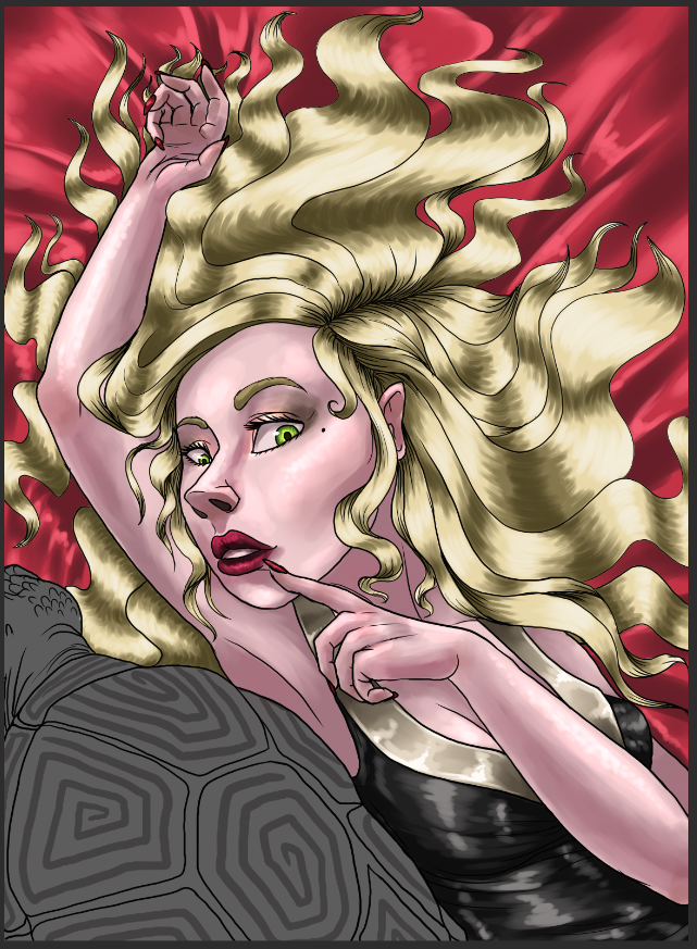 My bard/druid girl from our 'haunted hotel' campaign! Roxy is an ageing actress who is desperately clinging to her youth when she becomes trapped in the haunted hotel.