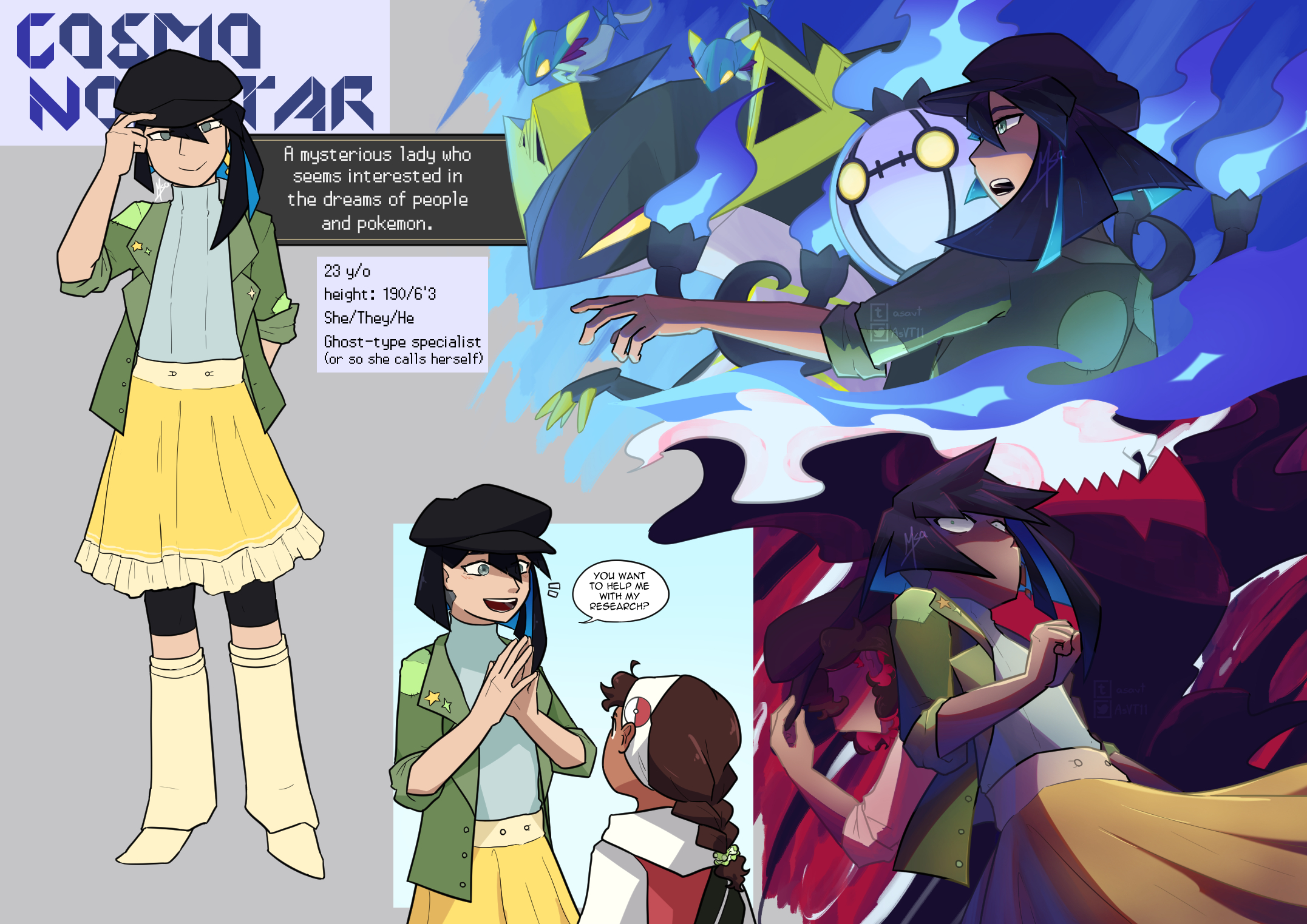 I'd love to make a game plot with them involved... but well, I lack time for that ;)Just a small doodle page on a character of mine. Meet Cosmo! I'm very pleased by how the top right and bottom right doodles look. I'd love to make a game plot with them involved... but well, I lack time for that ;)0 Comments 0 Shares 4 Views -