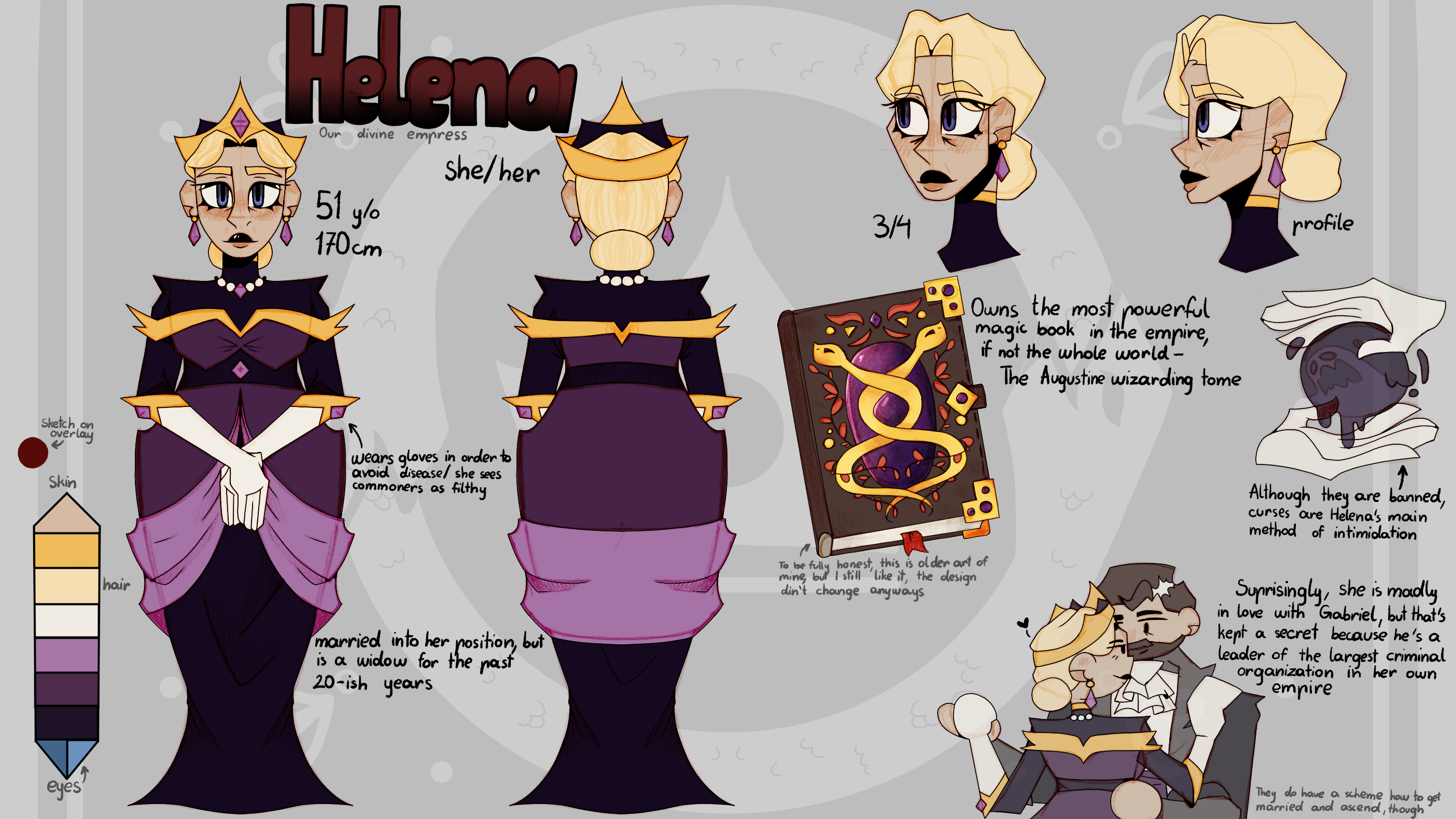 https://unvale.io/bluesun08Our divine empress of Hiemsell! She looks lovely, if I can really say that about my art, just don't ask me how easily would she move in that dress. That part is slightly more form over function, so ignore that. I'm going to post Gabriel here in a few minutes, it kinda felt wrong not to post them together. Let the lovebird lunatics in their 50s be together, you know? Neither are on UnVale, but I'll post the description of their motives and personalities that stretch the site's character limit as soon as humanly possible Link to my ArtFight: https://artfight.net/~blue_sun08 Link to any additional info you might be interested in: https://unvale.io/bluesun080 Comments 0 Shares 11 Views -