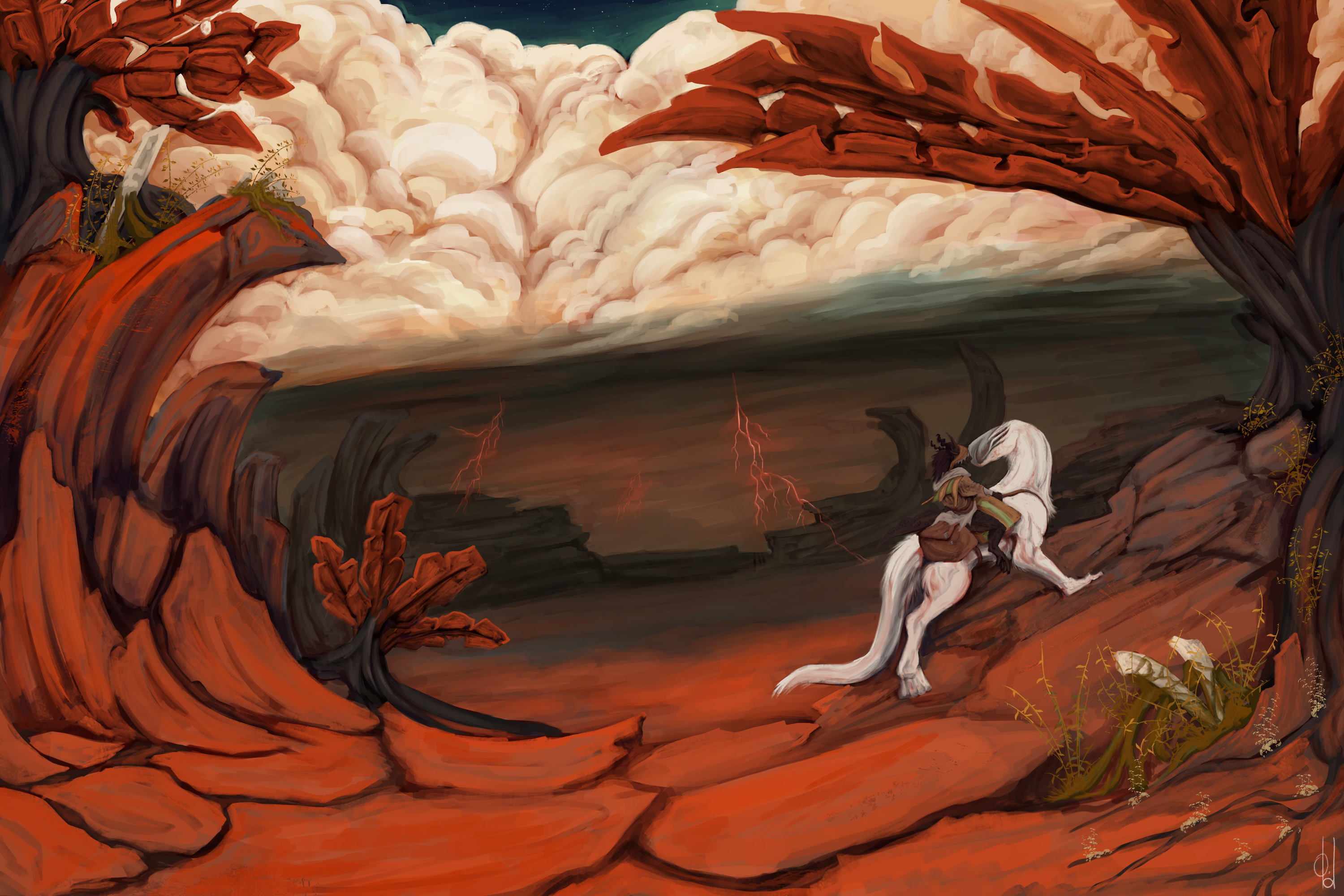 The flat rolling expanse of plains that make the Liderea Region, racked by storms that commonly posses hurricane force winds. The whole region is plauged by storms, only worsened by the still burning Kajir Region to the west. Here, almost always coated in thick clouds and strong storms, finds a clearing with a large break in the clouds. Breaks like these are rare.The flat rolling expanse of plains that make the Liderea Region, racked by storms that commonly posses hurricane force winds. The whole region is plauged by storms, only worsened by the still burning Kajir Region to the west. Here, almost always coated in thick clouds and strong storms, finds a clearing with a large break in the clouds. Breaks like these are rare.0 Comments 0 Shares 9 Views