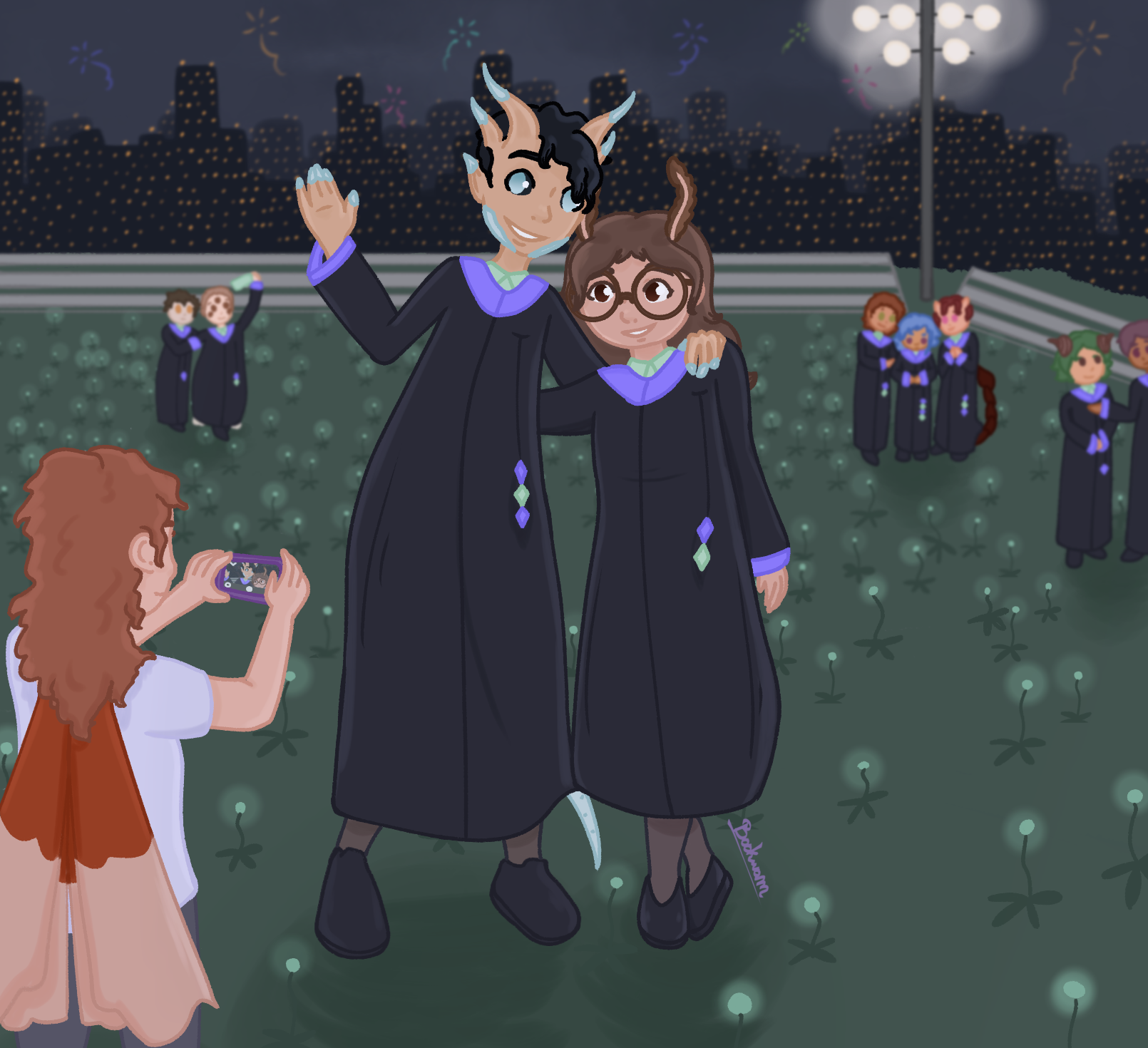 Round 3 of top OC was all about someone close to Evelyn. I chose to draw her graduating alongside Cyrus, as they were her tutor and best friendRound 3 of top OC was all about someone close to Evelyn. I chose to draw her graduating alongside Cyrus, as they were her tutor and best friend0 Comments 0 Shares 6 Views