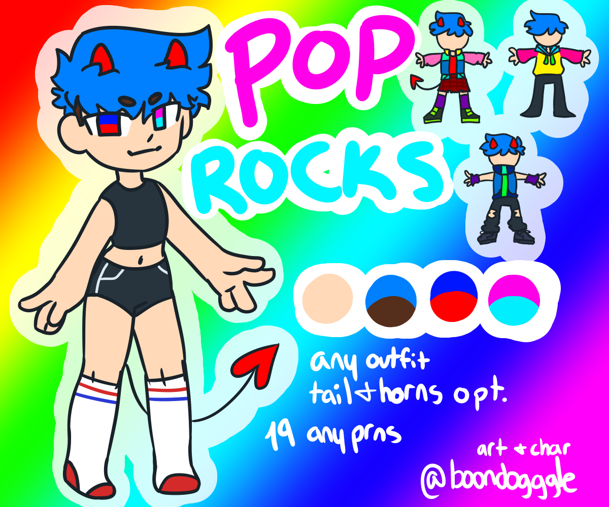 Hello InkBlot community! I'm new here and thought I'd share a recent ref I made for a not-so-recent OC of mine, Pop Rocks! She's really dear to me, but the original drawing was a bit dated, and Artfight is coming up so I figured I'd prepare for that ^^