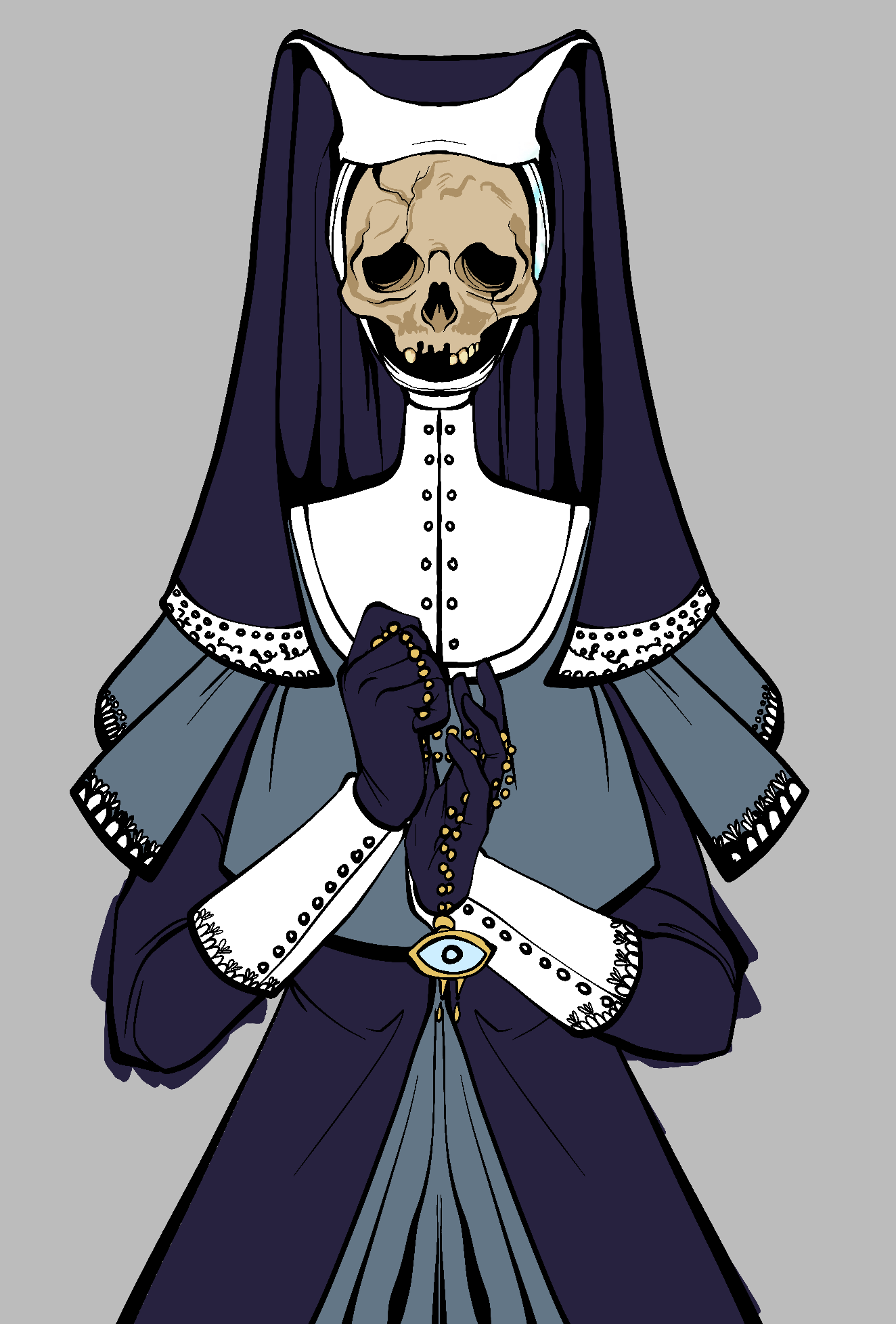 Wanted to have a play on the idea of an undead doctor in DnD, so I made a Reborn cleric in the Grave Domain! Her name is Hermia, she is a skeleton because her soul is clinging to life through sheer will and she vows to stay true to her deity until she finds a cure to the disease that killed her!