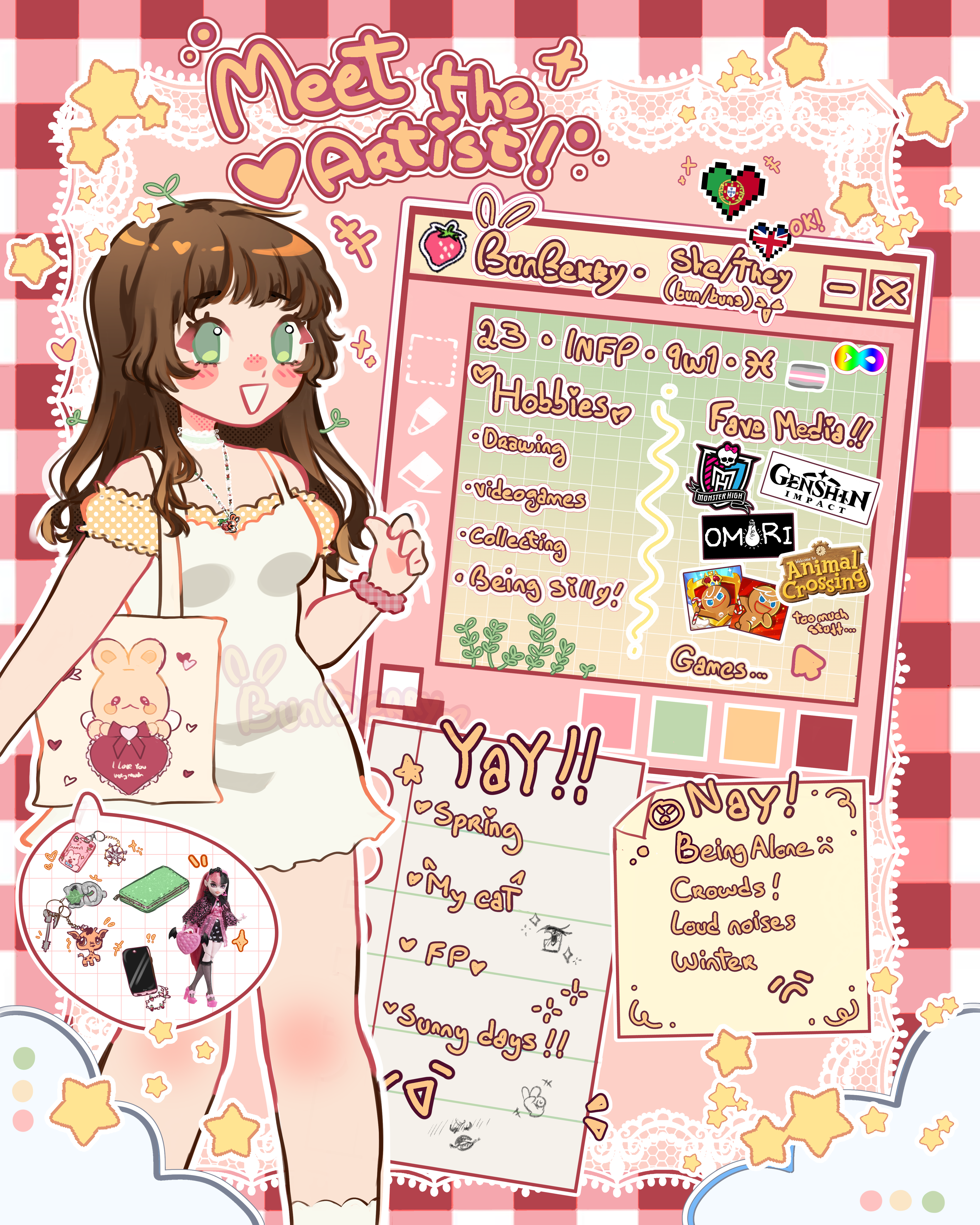🍓Meet The artist!🍓 I get so nervous when I list things I like and all of a sudden idk who I am djhf AND I ALSO LIKE TOO MANY THINGS so ig its fine if its a brief intro :} but anyway this was fun :P0 Comments 0 Shares 4 Views