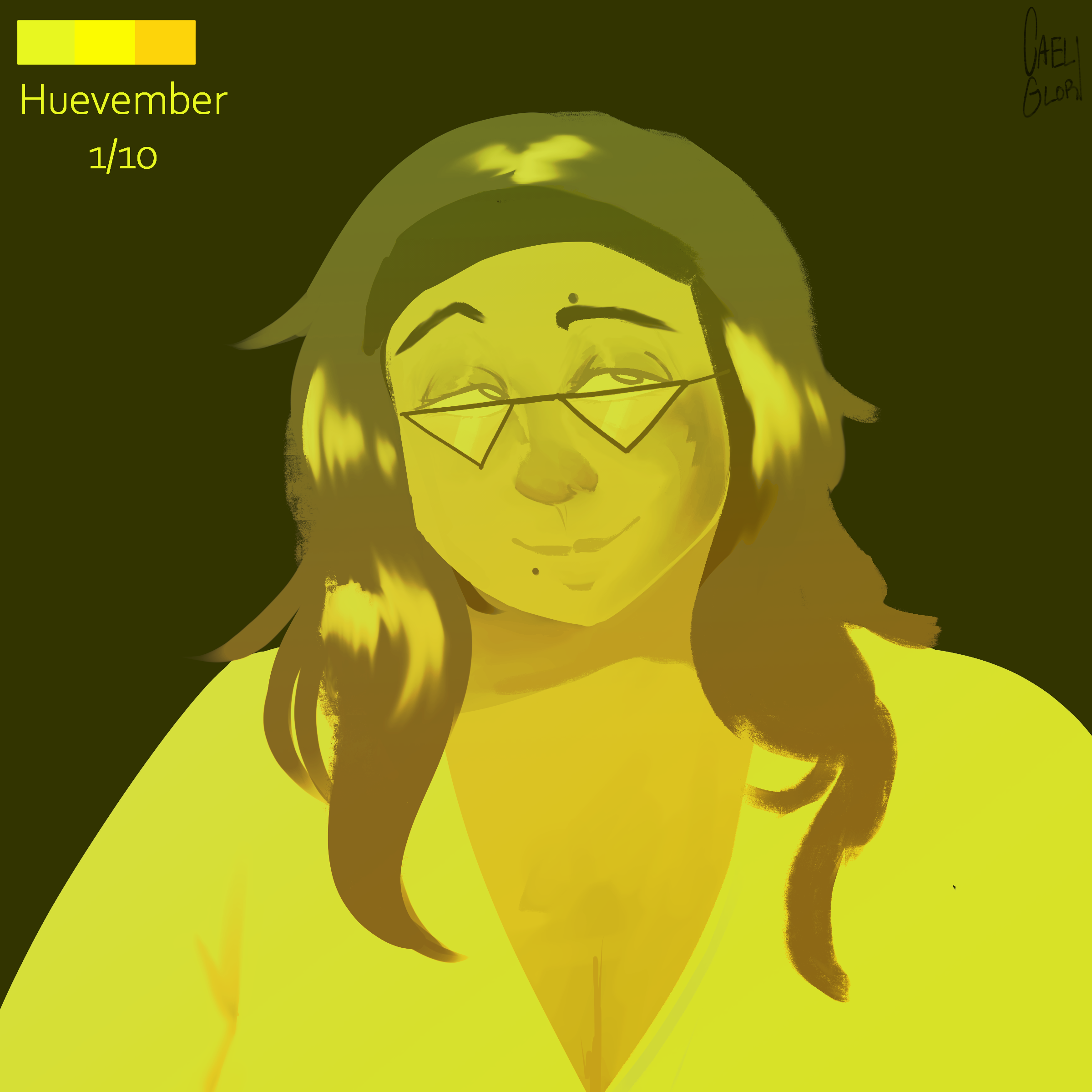 This one was for Self-Portrait Day, on Nov 1st.I'm doing Huevember this month, where instead of one drawing per hue, I combine them into groups of three hues, ten pieces for the month. This one was for Self-Portrait Day, on Nov 1st.0 Comments 0 Shares 3 Views -