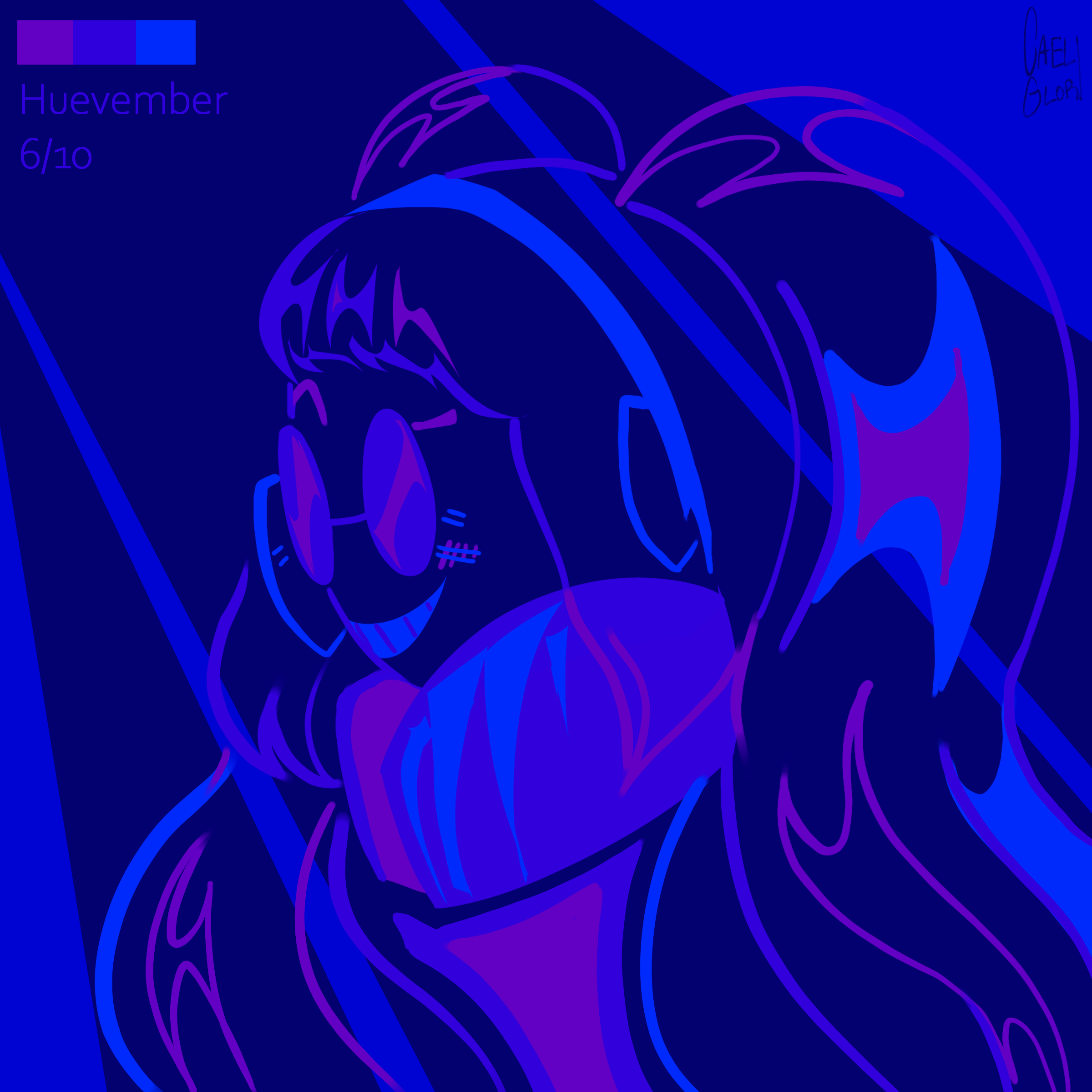I'm doing Huevember this month, where instead of one drawing per hue, I combine them into groups of three hues, ten pieces for the month.