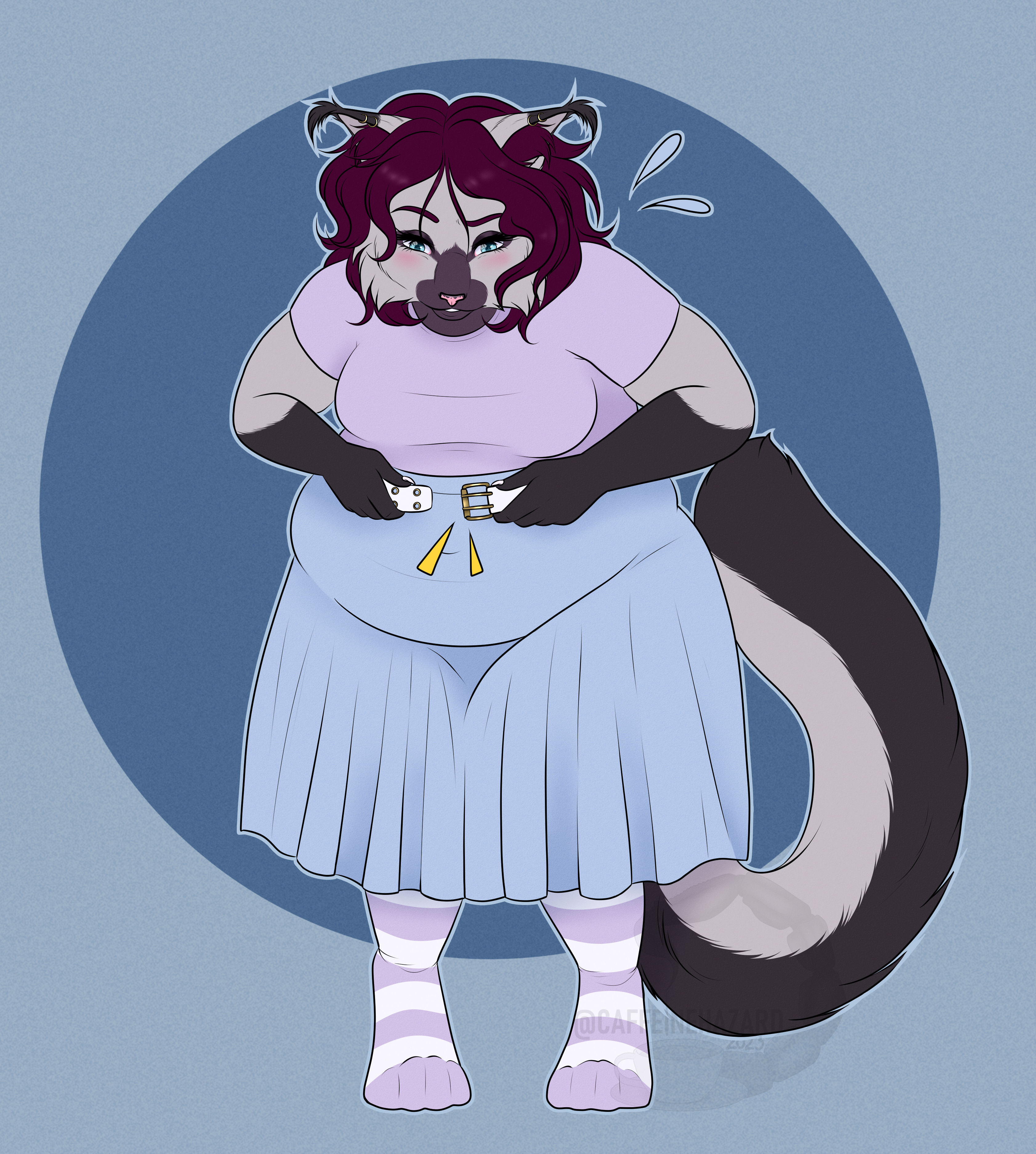 She may or may not have put on a few kilos lately and didn't take that into consideration when thinking this old belt would work great to accessorize this outfit. Not her fault the belt isn't strong enough to handle her!Flat colour semi chibi piece for Abby! She may or may not have put on a few kilos lately and didn't take that into consideration when thinking this old belt would work great to accessorize this outfit. Not her fault the belt isn't strong enough to handle her!0 Comments 0 Shares 24 Views -
