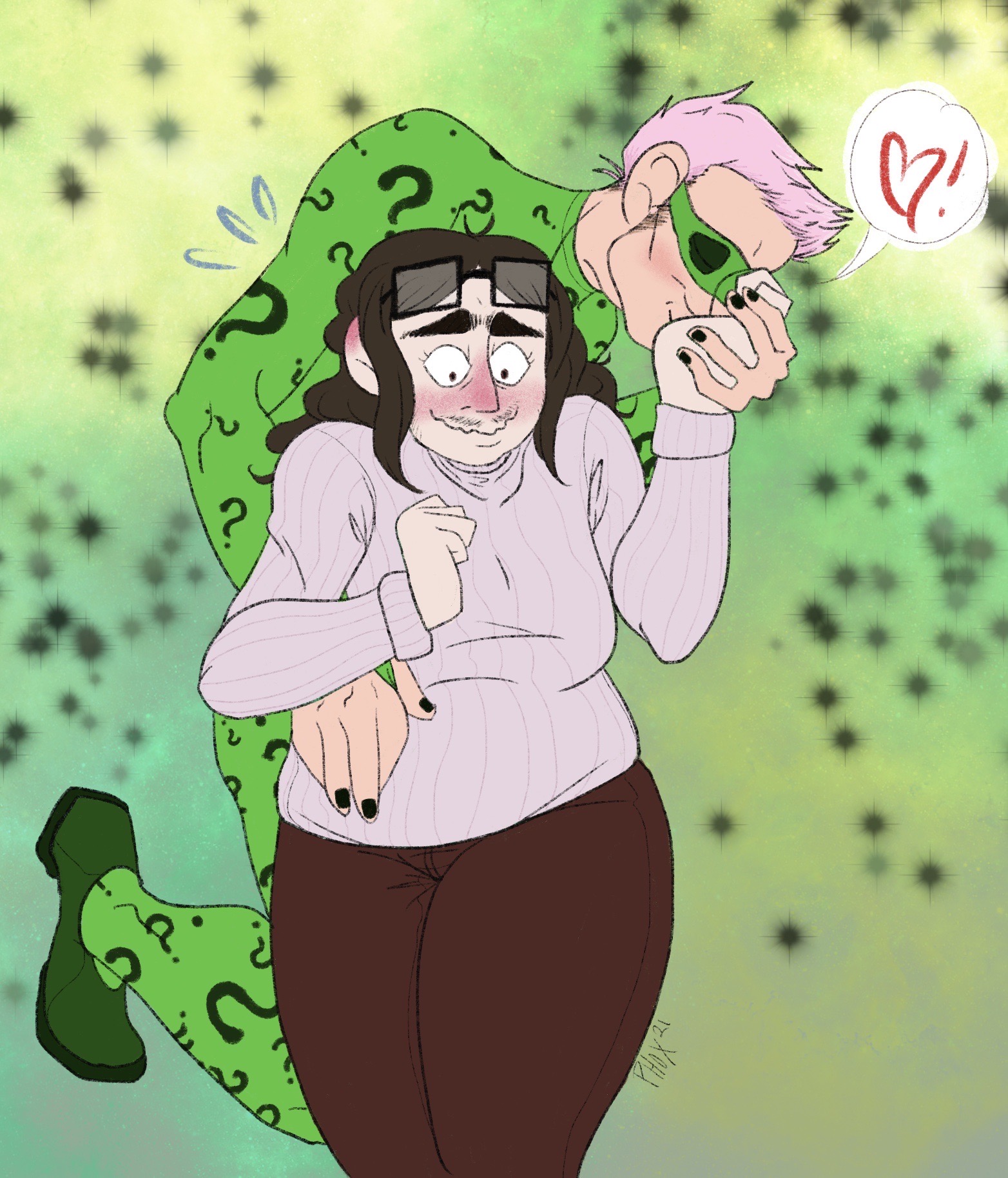 just a little art trade with my QPP last year of their Batman s/i Ember and Forever!Riddler