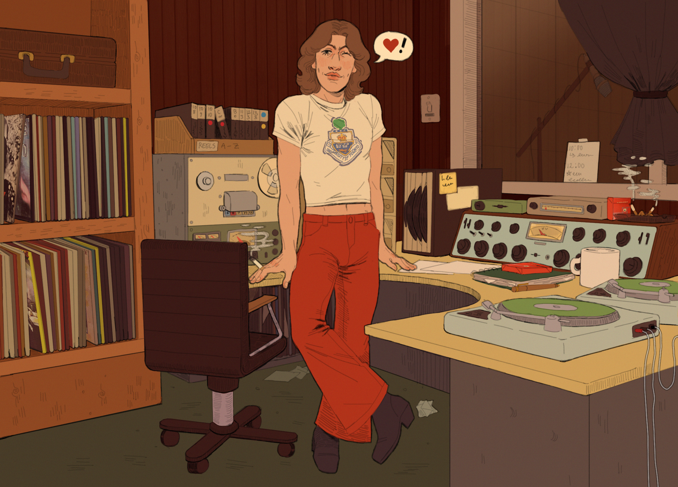 my oc, Paul Morgan, in the radio station he works at :)! he's part of a story i'm writing set in the mid 1970s set in toronto. i have a few things fleshed out, but mostly just concepts and characters at this point.