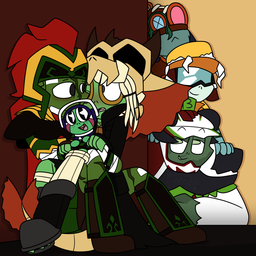 The basics of the AU are that it takes place in a fantasy-themed Neighborville that the False Lord Zomboss already zombified. This phenomenon caused all residents to evacuate to an isolated area with a fair amount of resources and zombie-free. However, unlike their old homeland, resources became harder to maintain each month because of their different production and living methods. It could be the end of humanity until a courageous peashooter stands up for his citizens to travel far and wide for help & take back Neighborville from the zombies. But he needs a guild as he cannot do this alone, so the current land selects the greatest heroes to join him in the adventure.