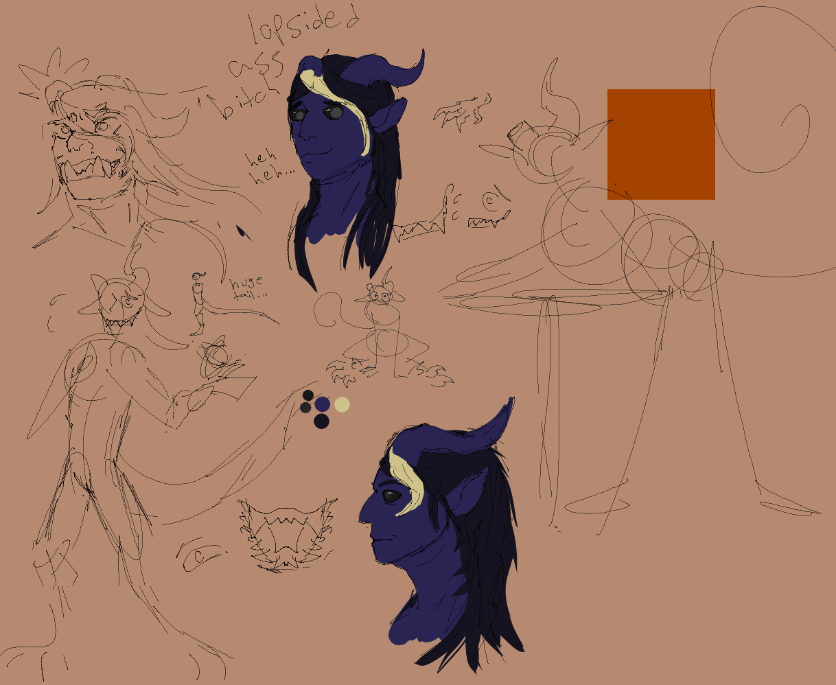 concepting for my next dnd campaign. im playing my first campaign rn, but it was made to be short and introductory on purpose and we're already almost to the end of the quest. so im already excited for the next one ghjhg. my current pc is really cool, but hes pretty quiet and i find that ive been struggling to make him impact the plot too much... so my next pc is this tiefling whos gonna be a lil bitch who constantly causes problems on accident AND on purpose. he is well meaning, but he's rude and naive. like, he loves you! but... he's just the most intelligent person here, no offense, so he should be in charge! and then he goes through with the plan he made up in 2 seconds and like fucking dies because it was stupid.