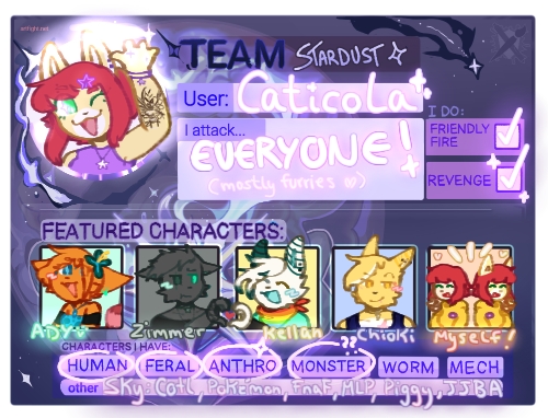I'm super excited!! Good luck everyone!! [My art fight ^^](https://artfight.net/~Caticola)0 Comments 0 Shares 5 Views