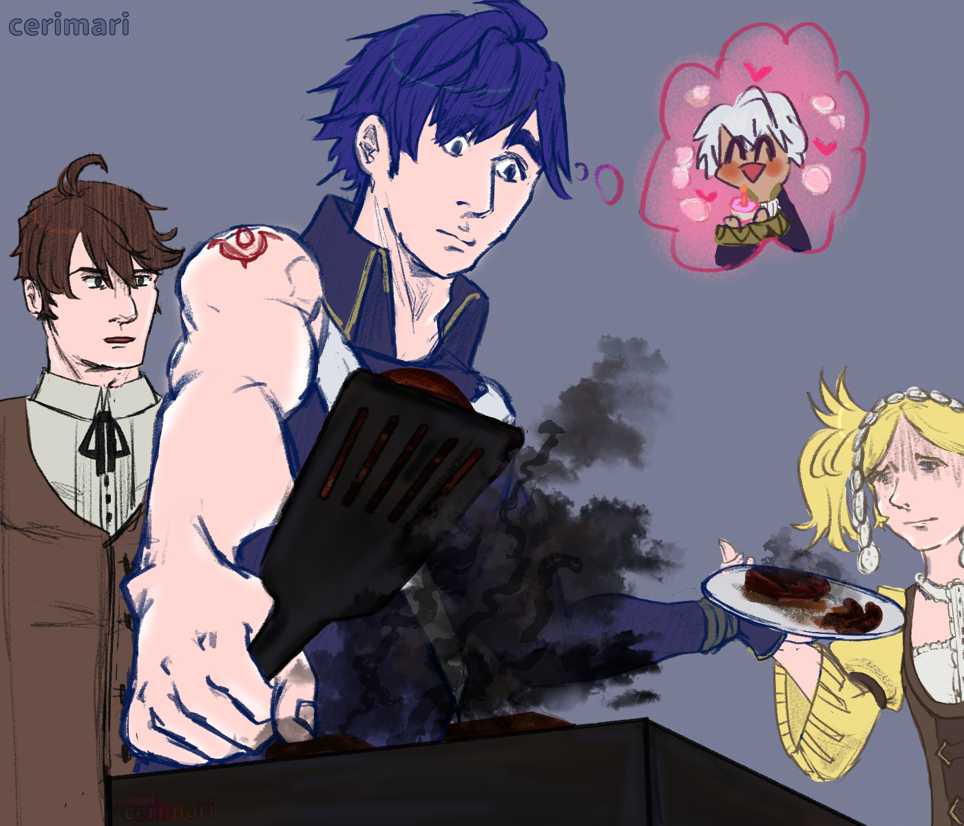 I'm Cerise and I love Fire Emblem and Pokemon. I also wear nice clothes from time to time. Did you know there is a self portrait among these illustrations? You do now.