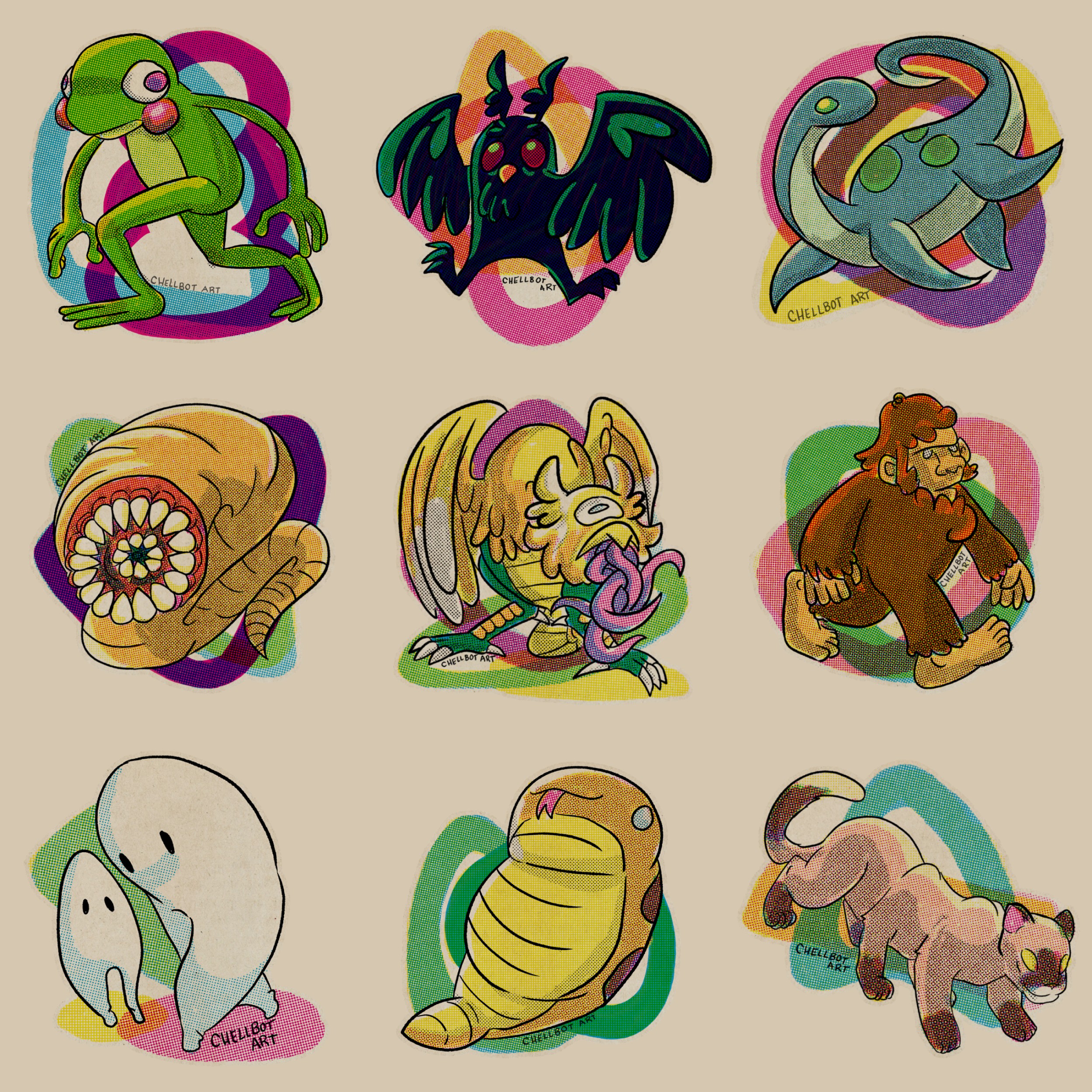 These are some of my original sticker designs for Cryptids in an atomic retro inspired style. These are the only designs for now, but I plan to add to them to match my other series of retro newsprint style Cryptids, which will be posted soon.These are some of my original sticker designs for Cryptids in an atomic retro inspired style. These are the only designs for now, but I plan to add to them to match my other series of retro newsprint style Cryptids, which will be posted soon. 🐸0 Comments 0 Shares 5 Views