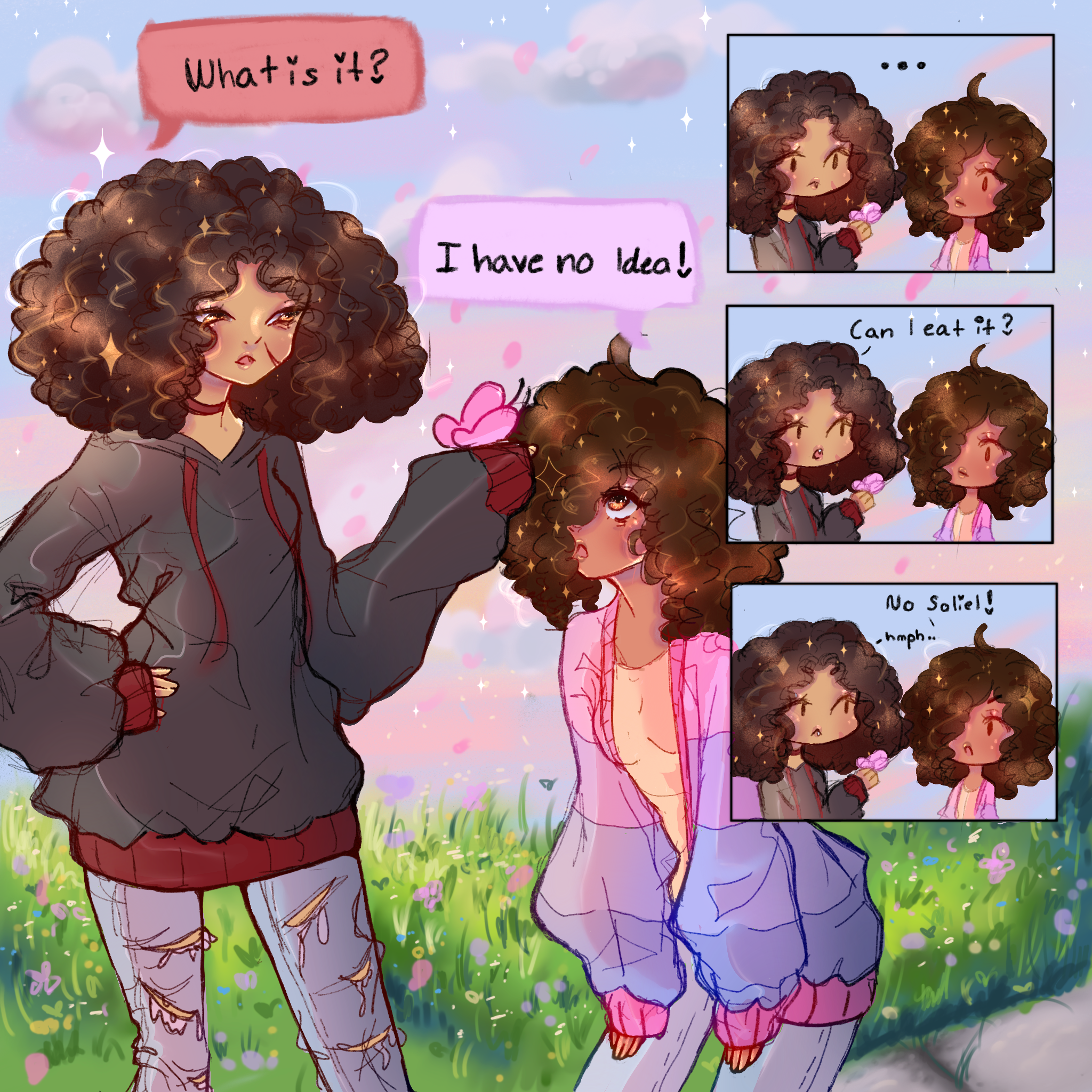 My oc stella introducing fishballs to stella to try. They are in their human form in this one! Also im experimenting with my style a bit so if she see changes in shading thats why x3My oc stella introducing fishballs to stella to try. They are in their human form in this one! Also im experimenting with my style a bit so if she see changes in shading thats why x30 Comments 0 Shares 24 Views