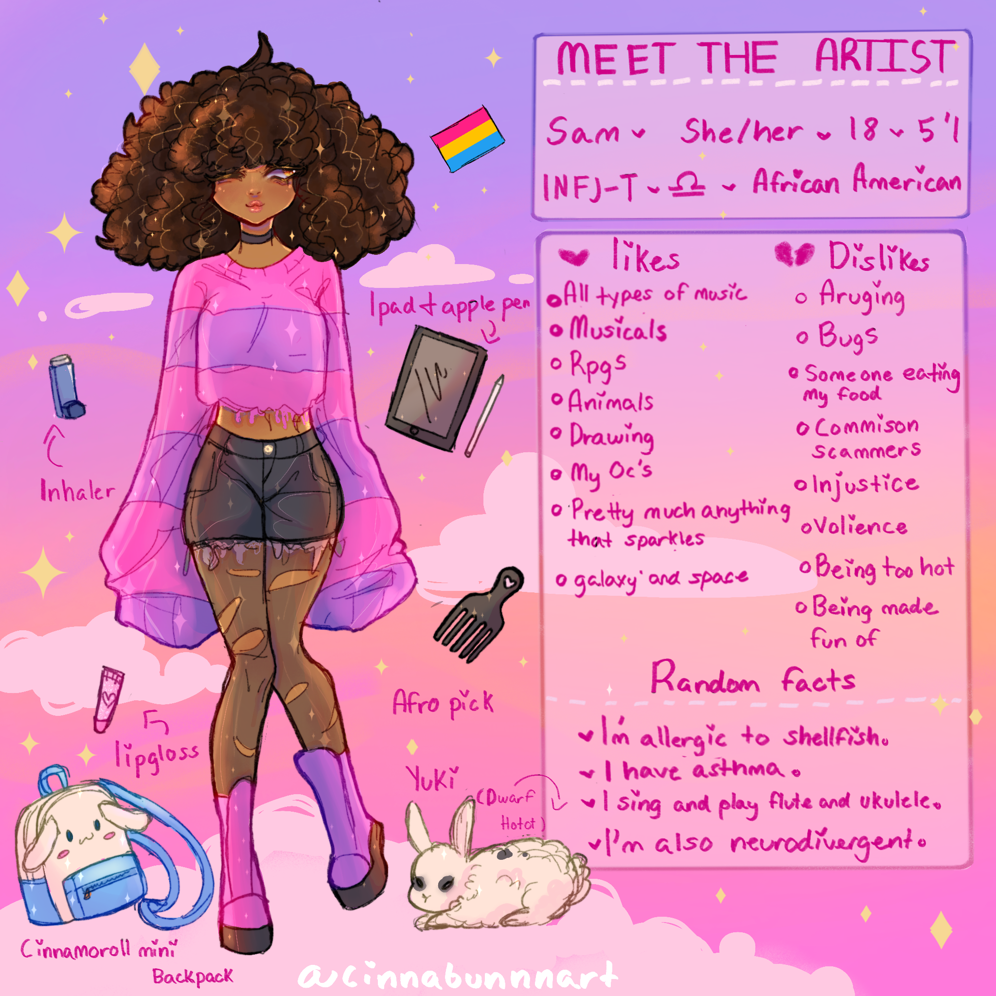 Also wasnt sure what to draw me wearing since i dont have much clothes so i just drew some i knew id wear if i had them!But thank you guys so much for 800+ followers on insta! Here is my meet the artist you guys voted for just some silly things about little old me ๐ Also another fact! Im dyslexic so if you ever see typos or missed spelled words thats why x3 Also wasnt sure what to draw me wearing since i dont have much clothes so i just drew some i knew id wear if i had them!0 Comments 0 Shares 24 Views -