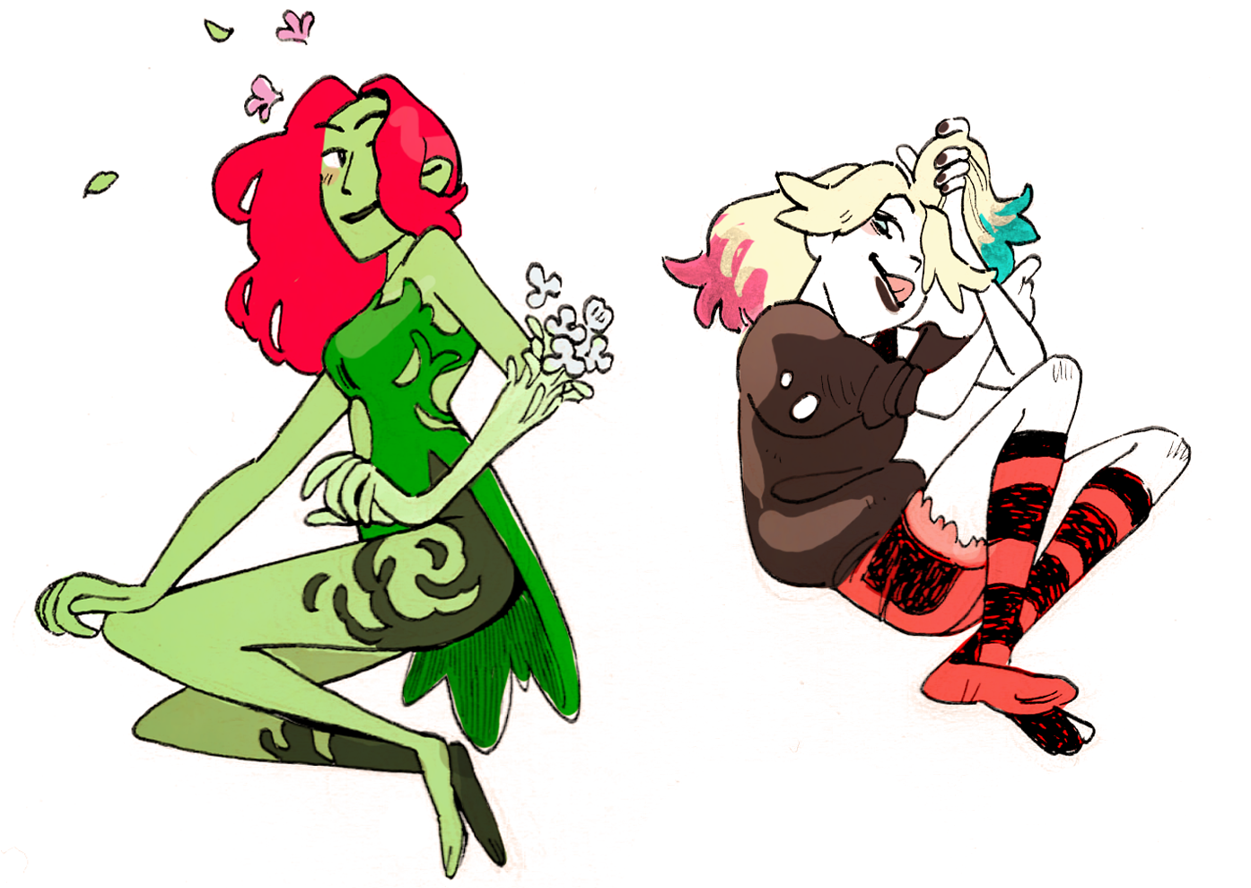 I hope I explore other ways to draw Harley and Ivy, what's great about them and their various designs is how you can make them your own and have fun with different outfits, different interpretations, like the many many artists before who have made comics, animations, and video games about them.