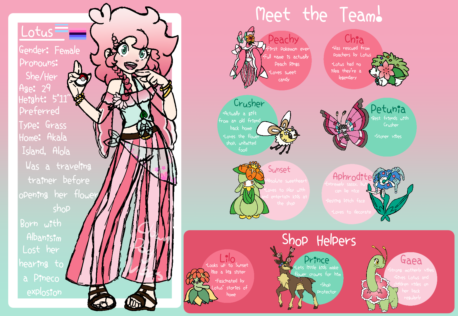 Another ref sheet! This time of my girl Lotus. She runs a small flower shop!!Another ref sheet! This time of my girl Lotus. She runs a small flower shop!!0 Comments 0 Shares 7 Views