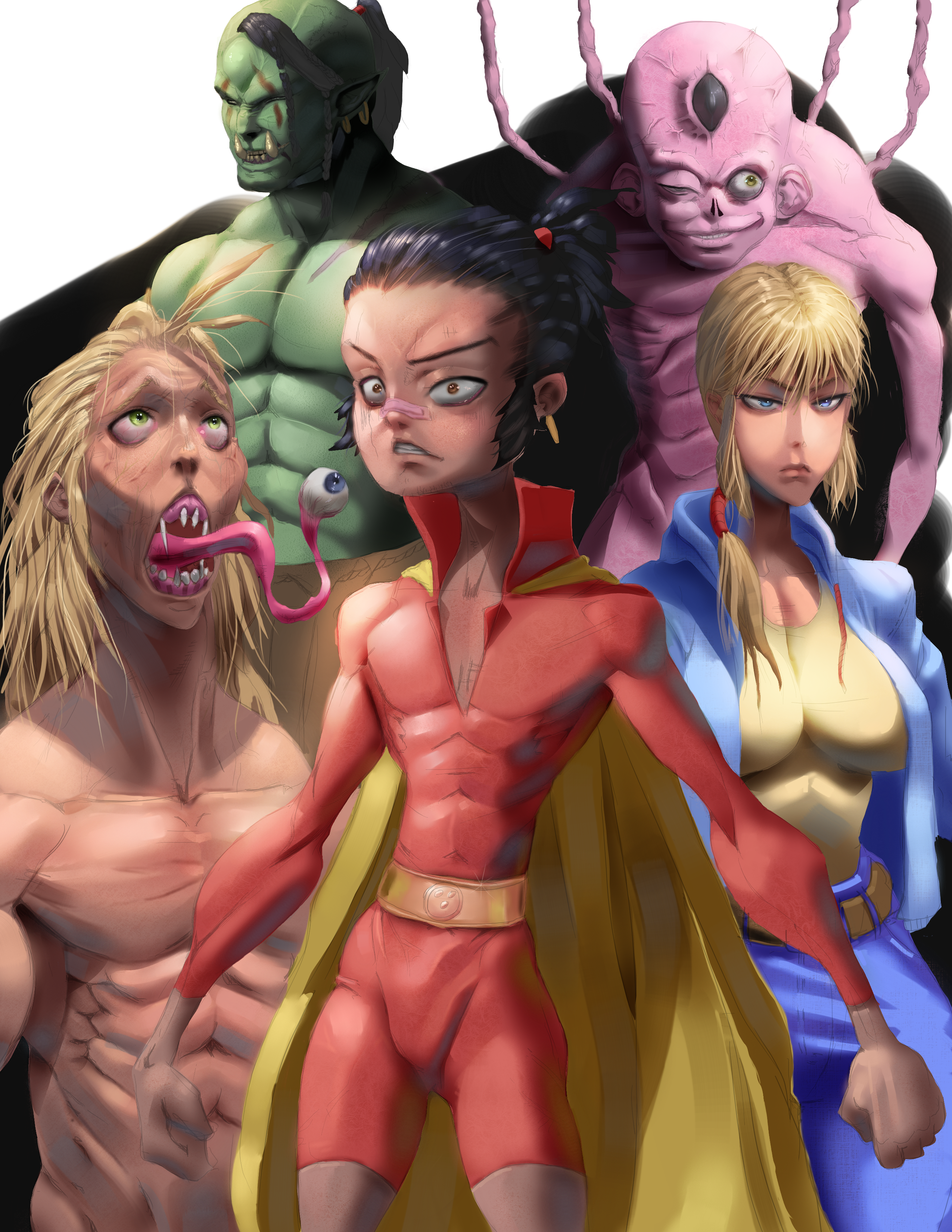 Super lad and his pals, eye tongue, brooding badass lass, orc boy and lastly but not least Gross face.Super lad and his pals, eye tongue, brooding badass lass, orc boy and lastly but not least Gross face.0 Comments 0 Shares 7 Views