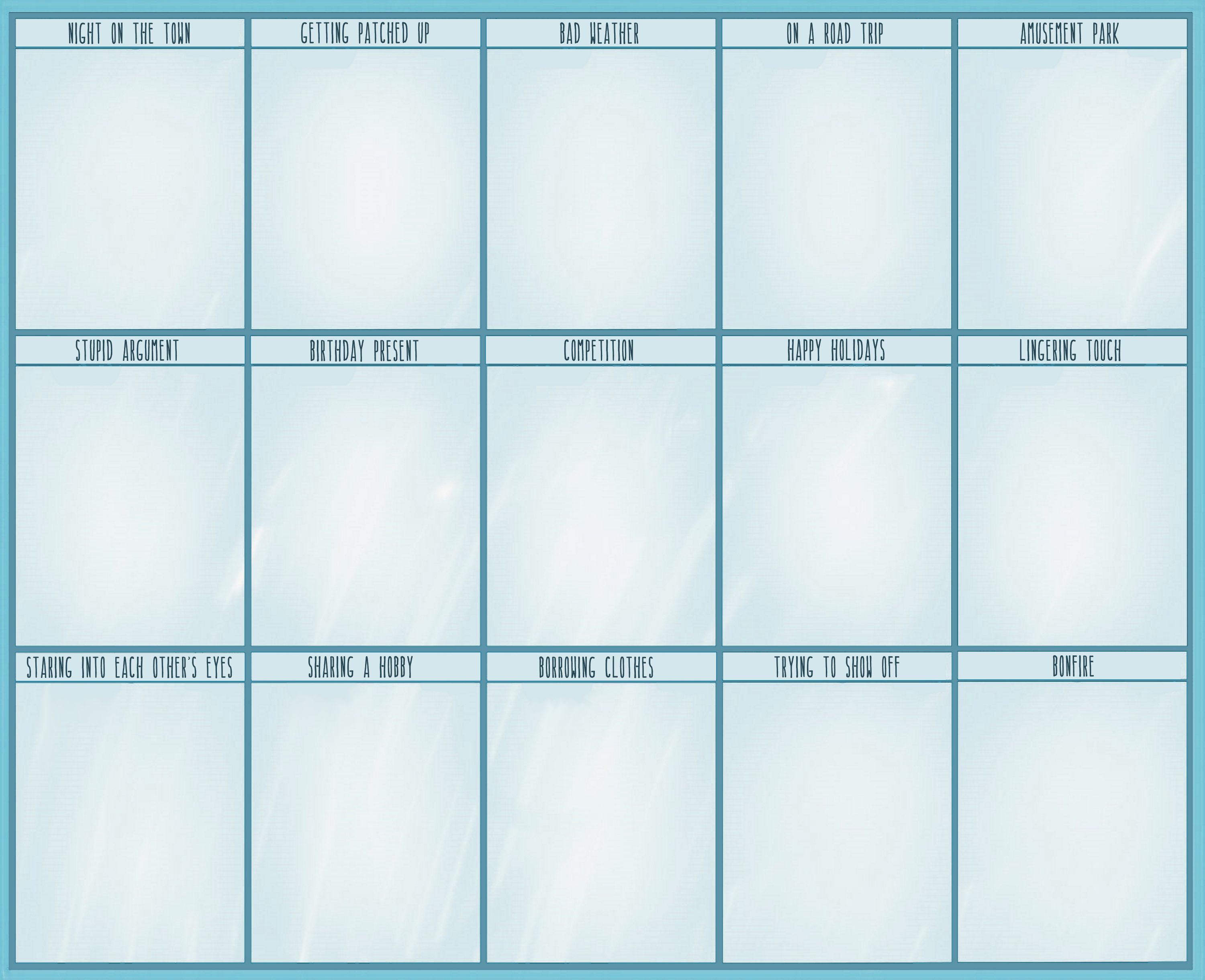made an OTP meme! i have filled out a lot of the most fun ones i came across so i made my own. i still need to finish this my own at some point...