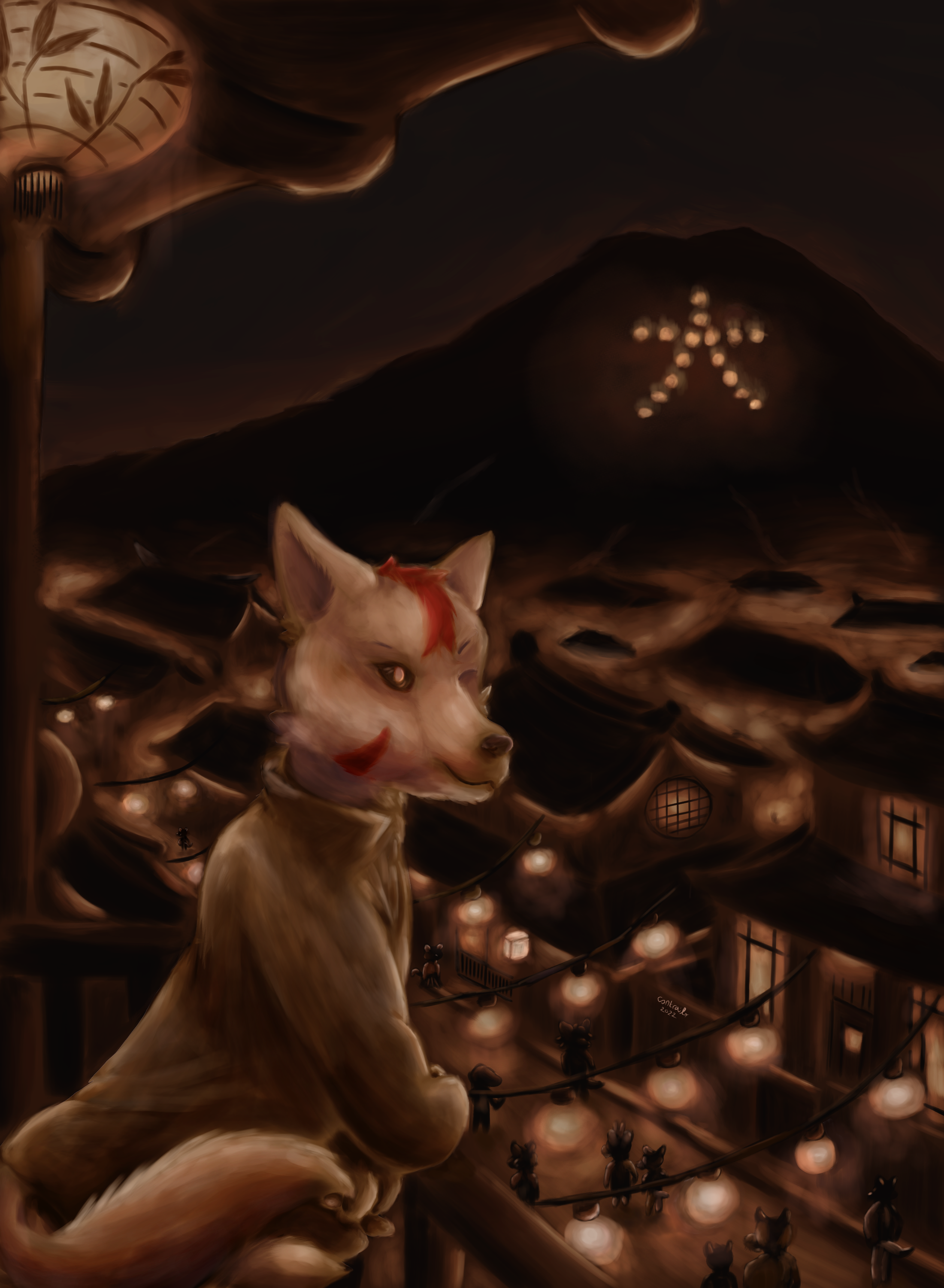 A gift art themed in Kyoto during the Obon festival ... For my brother kiwisurfer46 whose borkday is May 18th! Happy borkday bro ^w^