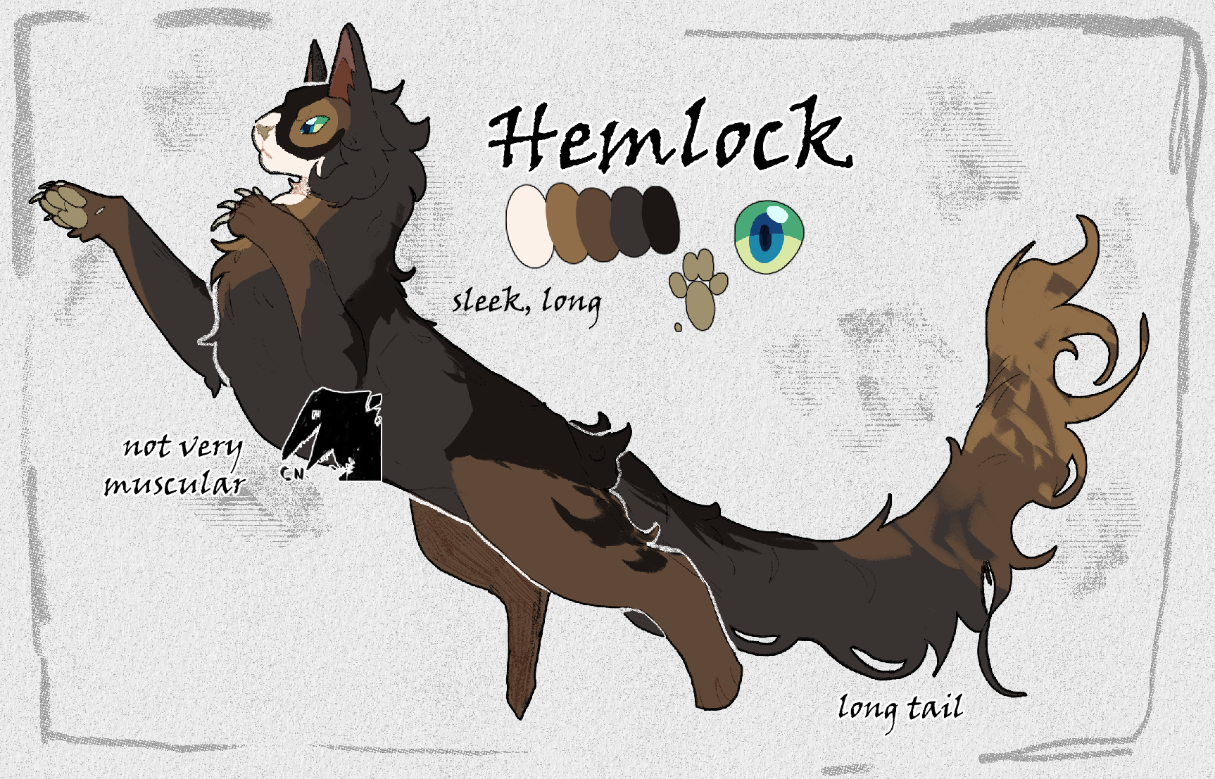 also some more art (involving my story!) this kitty is called hemlock and she is the sister of the protag, lace :]