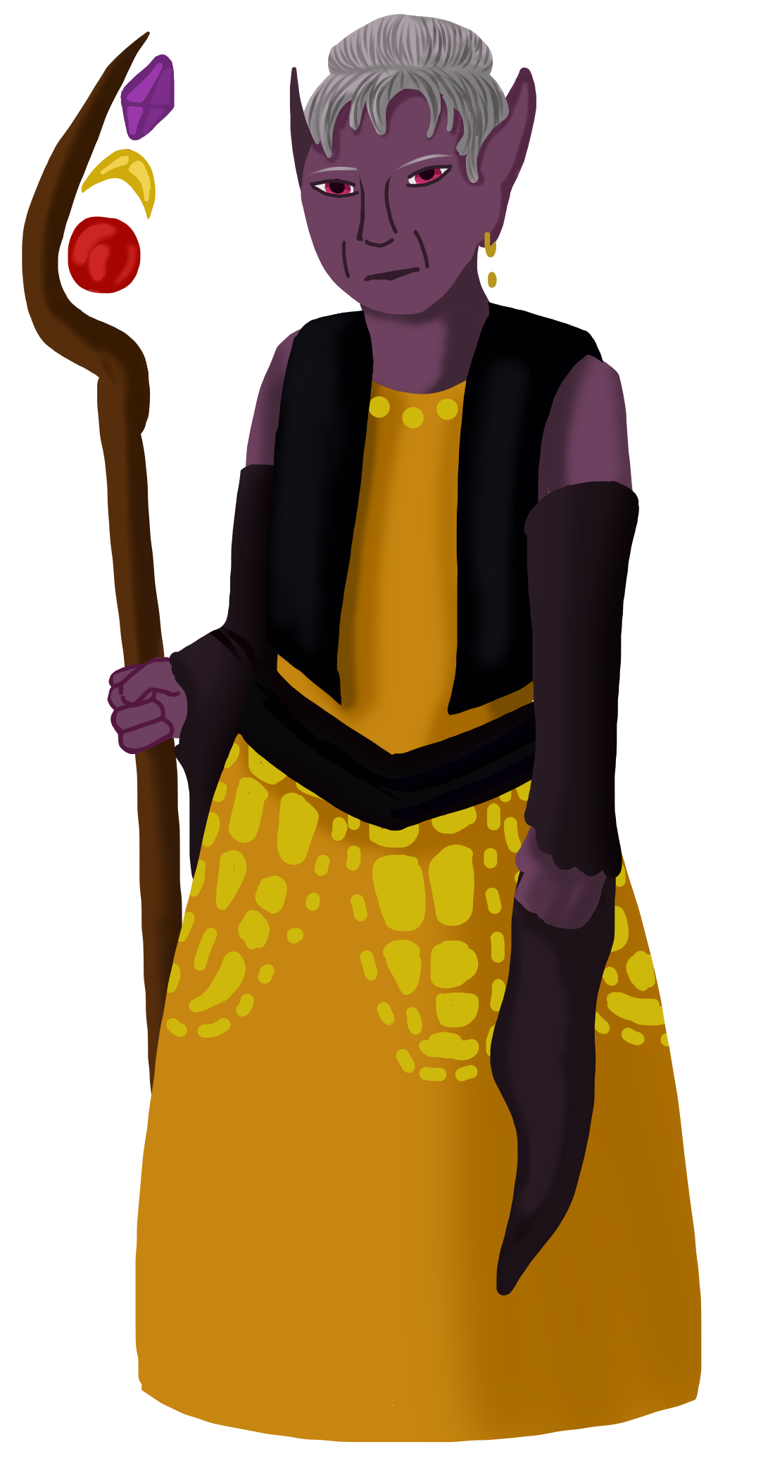 Fun fact, Magdiel's dress is meant to be bee or honeycomb themed~Magdiel Liadon, mother to the Temphere party's boss Valanthe. She and Valanthe have a tense relationship, unfortunate as they're in charge of different halves of the same city. Magdiel is an eladrin elf, something that's now different in D&D 5e but in Temphere, means purple with crazy-long ears. Fun fact, Magdiel's dress is meant to be bee or honeycomb themed~0 Comments 0 Shares 28 Views -