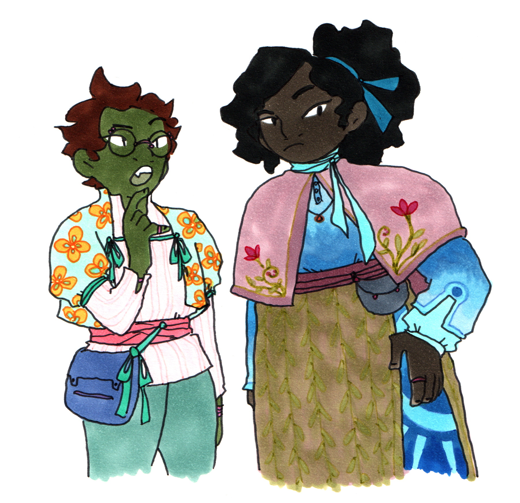 for jolene, i love her solemn cleric clothing vibes, so i wanted to give her something that was still cute, but like… sensible, serious cute. so, half cape. but then she’s got like. that religious stuff, i THINK it’s sun… related……. or adjacent…….. i may have made that up though. anyways, that’s where the sun on the bottom of the under-dress came from. and one color seemed to boring and like… nunnery vibes.. so. gradient.kos-ified maggie and jolene ✨ from [clover and cutlass](https://cloverandcutlass.com/) not that its particularly interesting or surprising, but here’s my design thoughts. gave maggie a cute, bright, but still functional outfit because she has a very bright personality, and i like to see that reflected in clothing. but its still practical, because i feel like the importance of functionality is probably something that she learned. for jolene, i love her solemn cleric clothing vibes, so i wanted to give her something that was still cute, but like… sensible, serious cute. so, half cape. but then she’s got like. that religious stuff, i THINK it’s sun… related……. or adjacent…….. i may have made that up though. anyways, that’s where the sun on the bottom of the under-dress came from. and one color seemed to boring and like… nunnery vibes.. so. gradient.0 Comments 0 Shares 32 Views