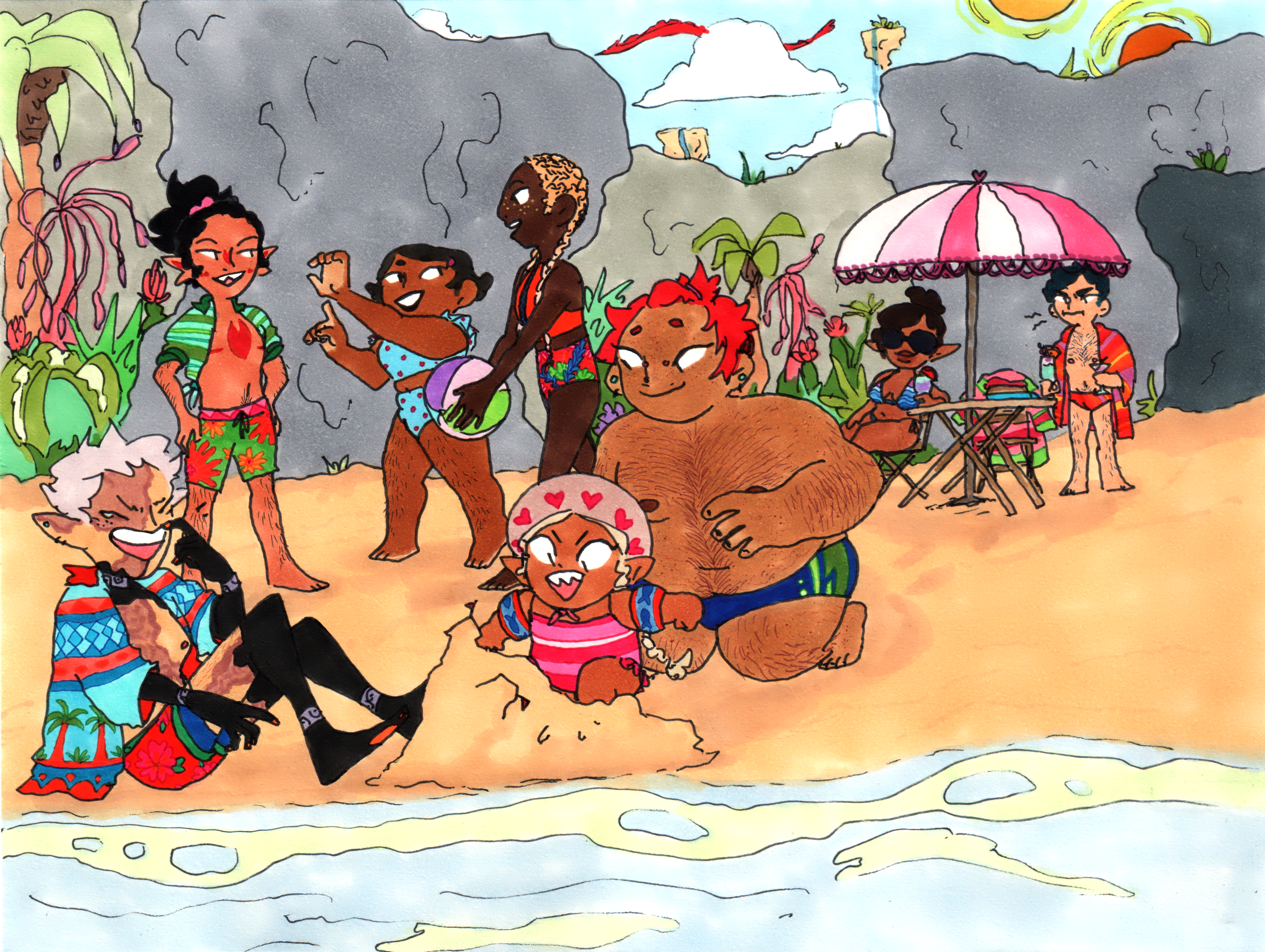 image description: [a beach scene with the main kings of sorts cast. in the front, bon laughs uncontrollably while watching baby destroy their sand castle. hana is kneeling behind baby. he had come over to stop her, but let her continue after seeing how hard bon was laughing. behind them, kiigari and chaarose are teaching teraat how to serve volleyball style, but with with a beach ball. in the back, aoife smiles, watching everyone from under an umbrella. marek stands behind her, mad that hana left the table and that aoife took one of the chairs.]the kos gang go to the beach! image description: [a beach scene with the main kings of sorts cast. in the front, bon laughs uncontrollably while watching baby destroy their sand castle. hana is kneeling behind baby. he had come over to stop her, but let her continue after seeing how hard bon was laughing. behind them, kiigari and chaarose are teaching teraat how to serve volleyball style, but with with a beach ball. in the back, aoife smiles, watching everyone from under an umbrella. marek stands behind her, mad that hana left the table and that aoife took one of the chairs.]0 Comments 0 Shares 31 Views -