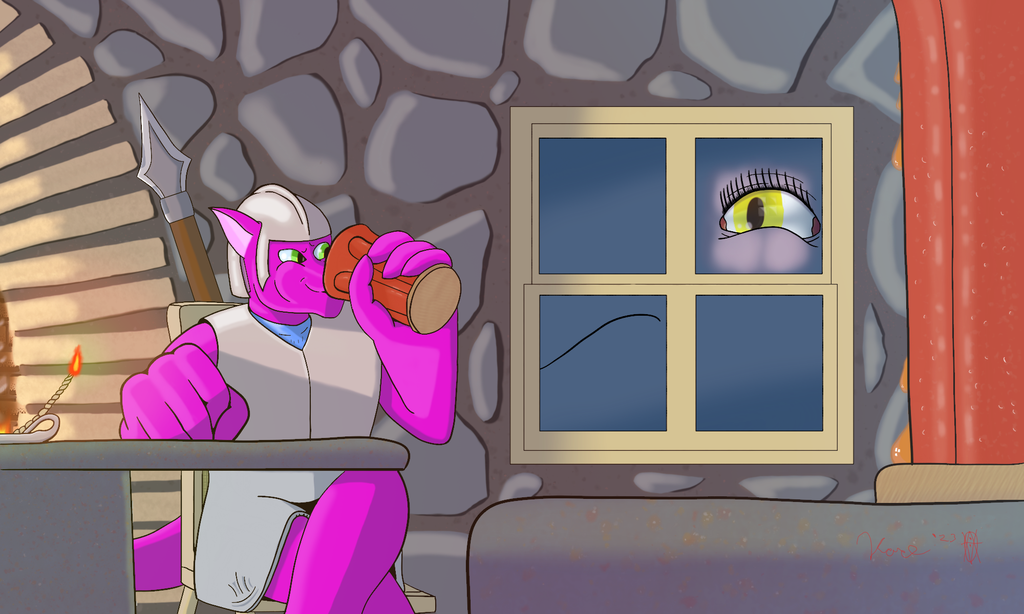 "Easy... I find a window.""She's afraid of the dark? Can't cloudkin see at night?" "Yeah, but it's less about the dark and more about being separated when we're docked." "Weird... So how do you stop her from freaking out?" "Easy... I find a window."0 Comments 0 Shares 7 Views -