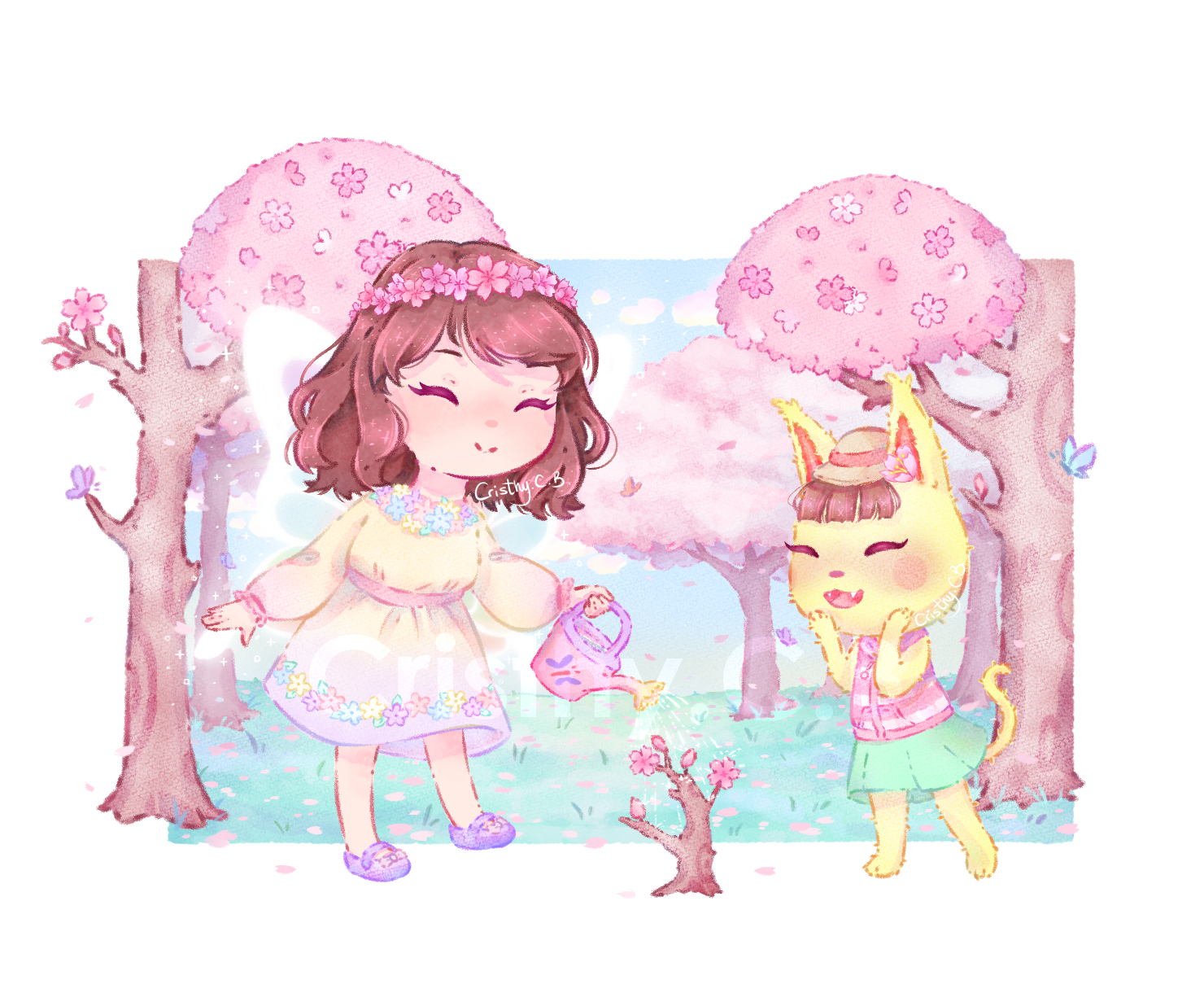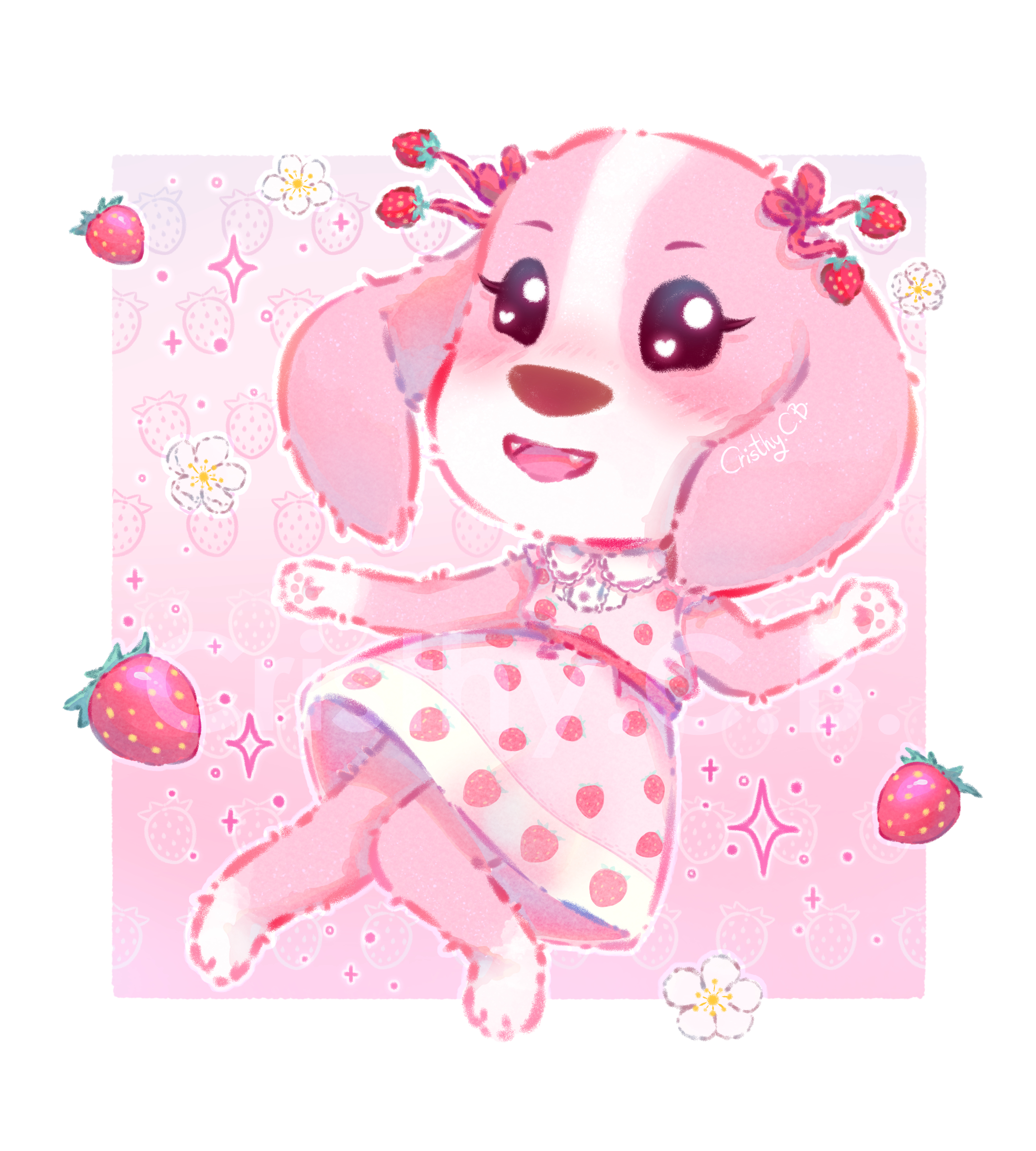 About this drawing, this is one of my most recent AC fanarts. I wanted to draw Katie for some years and this was the year to make it happen. Most of my AC fanarts are inspired by items and events from Animal Crossing Pocket Camp, which it’s the one that I play right now, so all the future AC fanarts will be based on it.