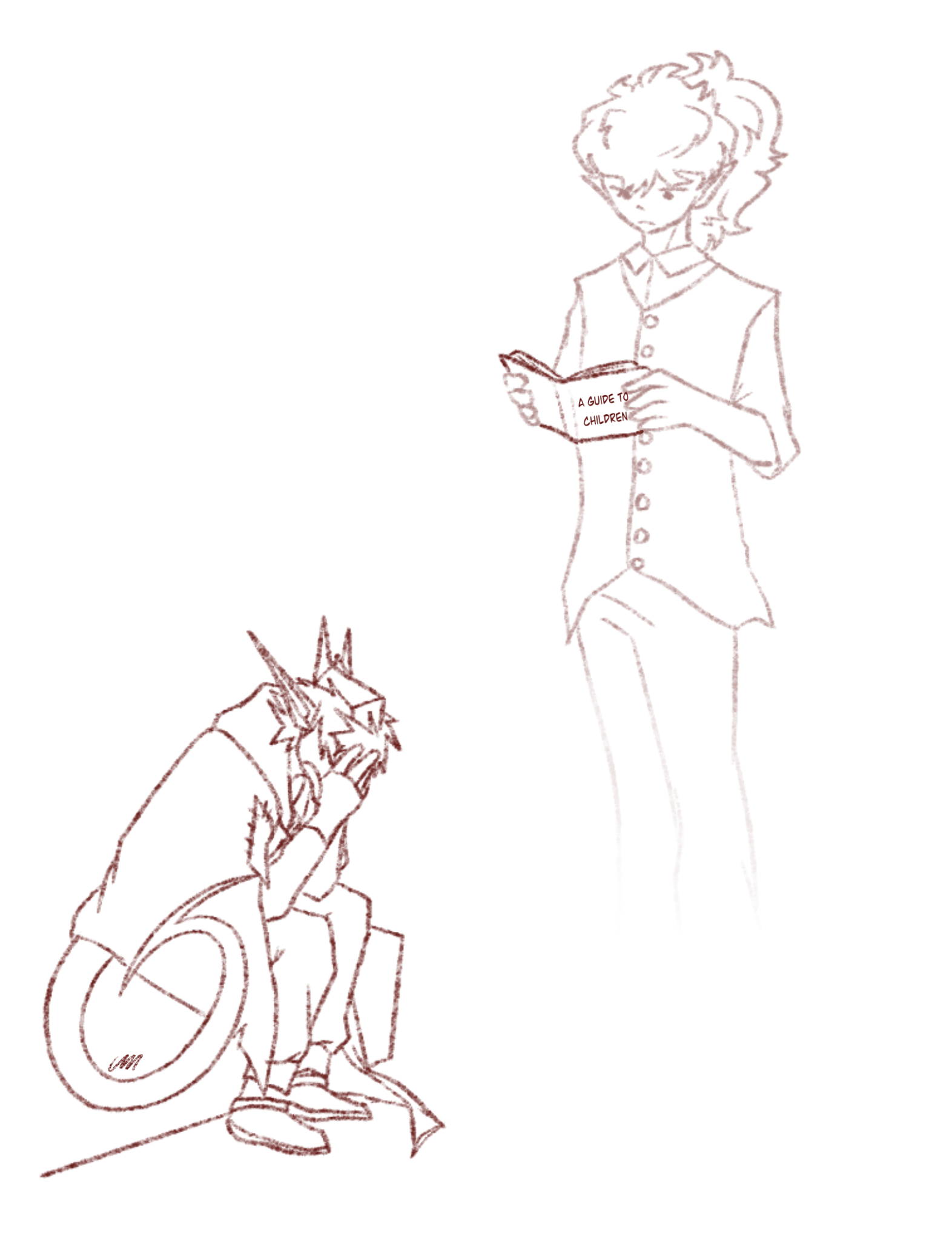 POV: You're watching an adventurer have a mental breakdown while his ghost companion looks up how to help him in a book about child care